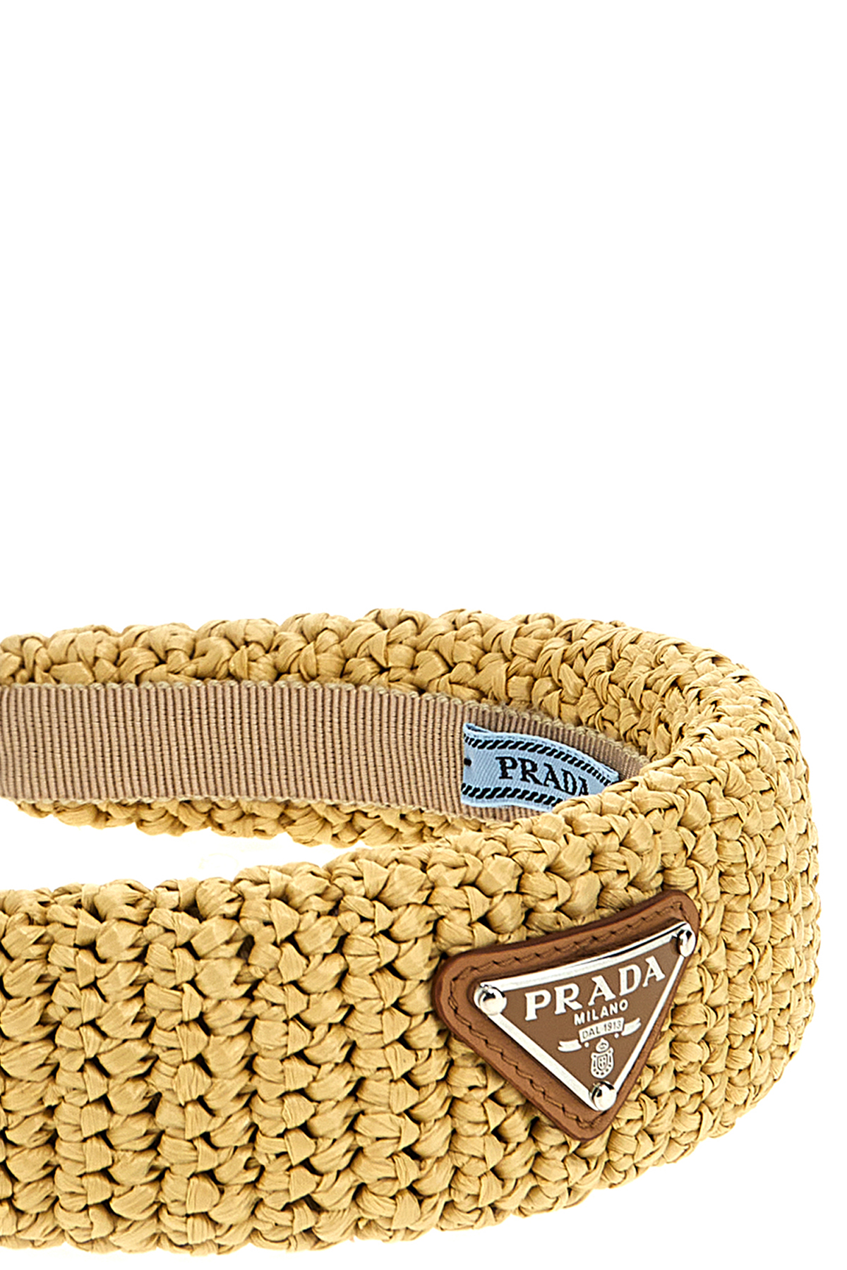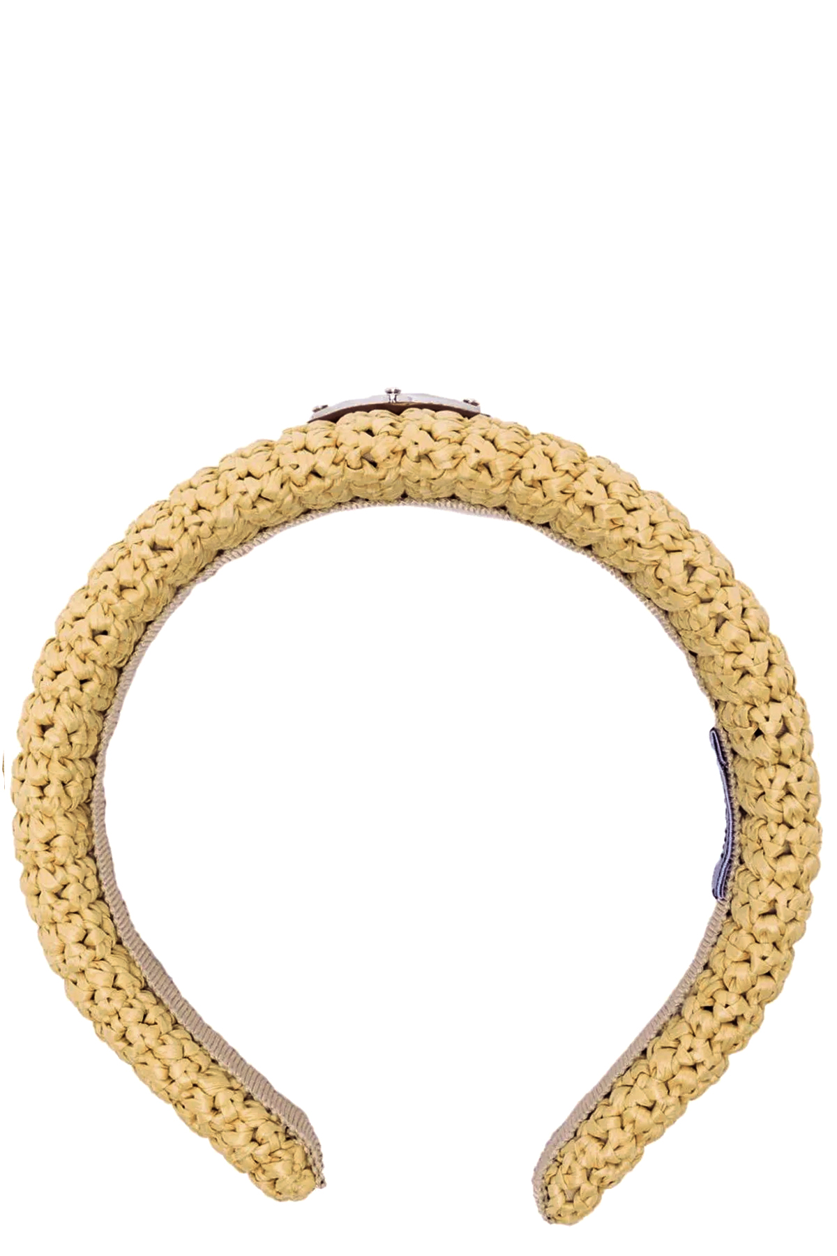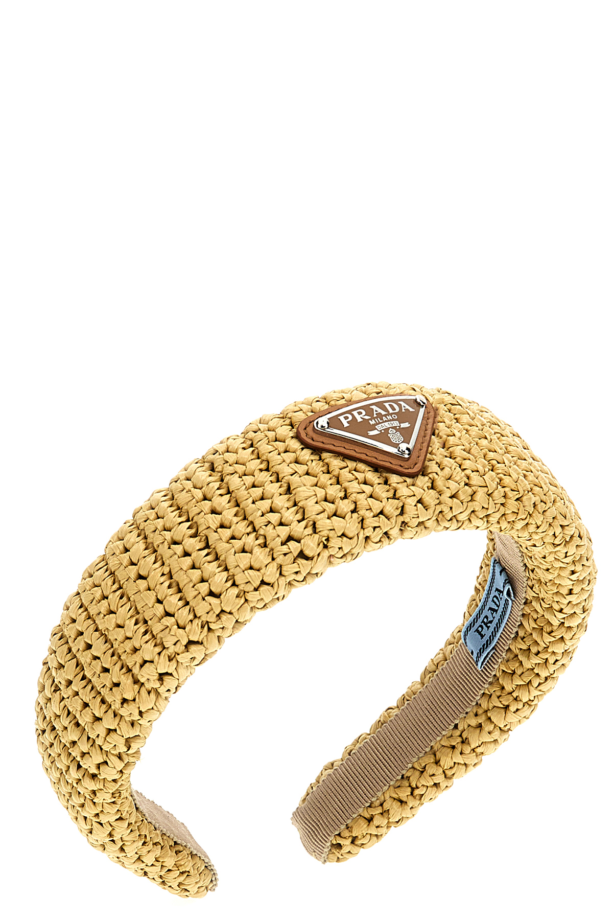 Raffia headband with triangle logo.