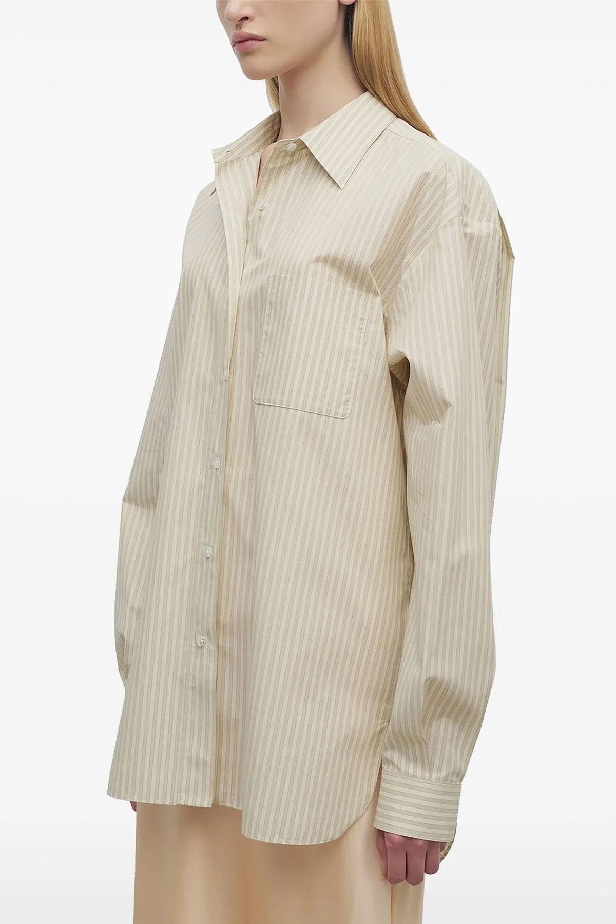 'Nesson' striped washed cotton poplin shirt, chest pocket, front button closure, long sleeves with cuffs and dropped shoulders, side slits. SUSTAINABLE: This product is made of organic cotton.