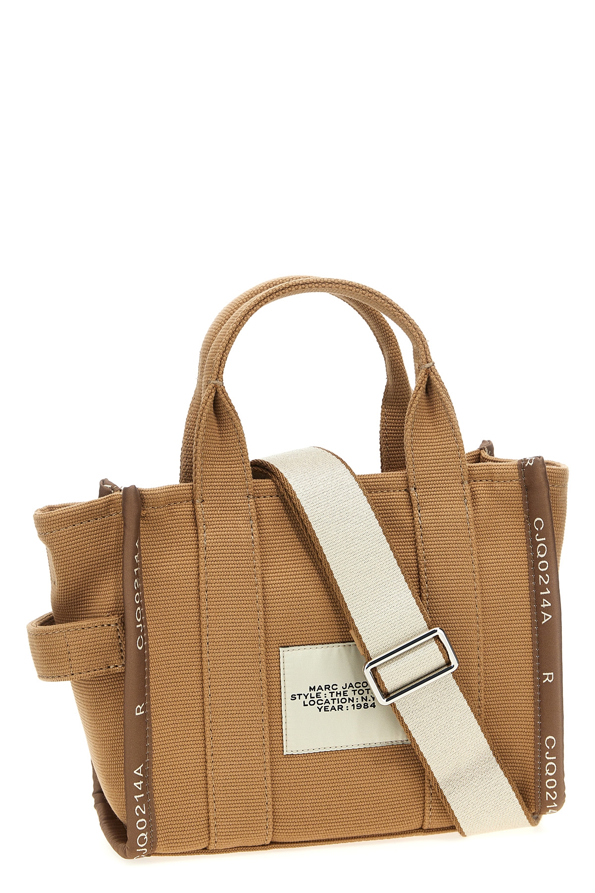 'The Jacquard Small Tote' handbag in woven jacquard fabric, top zip closure, front logo embroidery, double fixed handle, adjustable and removable shoulder strap.