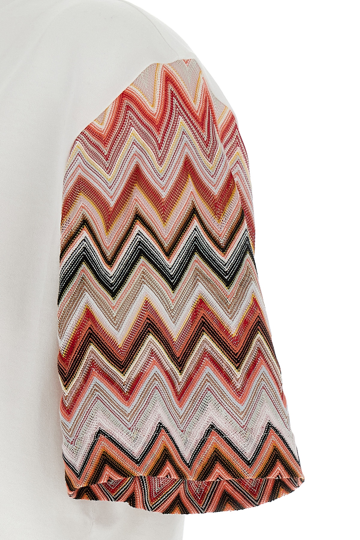 Cotton T-shirt, short sleeves in raschel knit with zigzag pattern, crew neck.