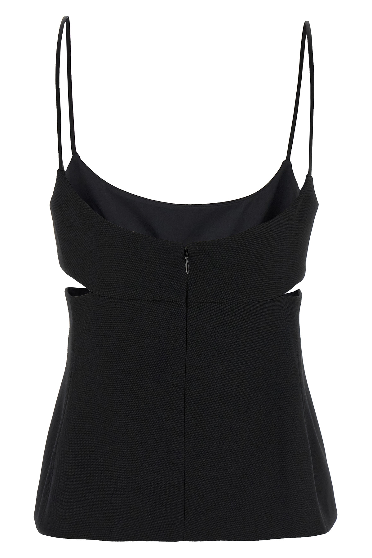 'Cut-Out Cami' Grain Depoudre blend top with balloon neckline at the front and back, bra stitching on the chest, cut-out details at the waist, thin straps, back zip closure.