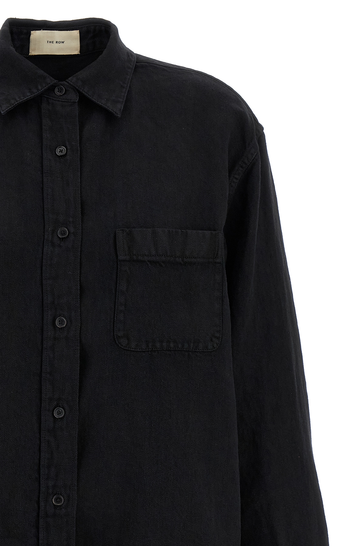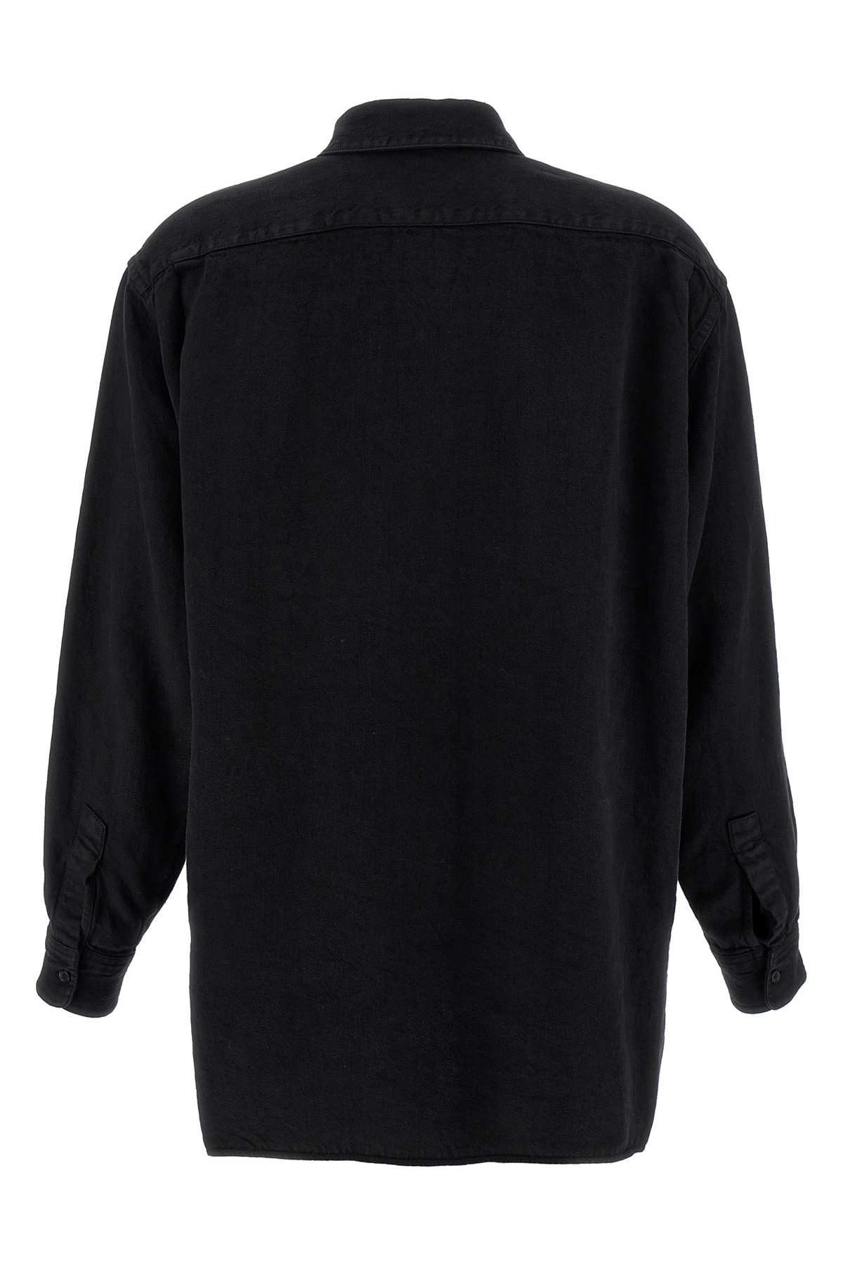 'Nesson' linen denim shirt, breast pocket, front button closure, long sleeves with cuffs and dropped shoulders, side slits.