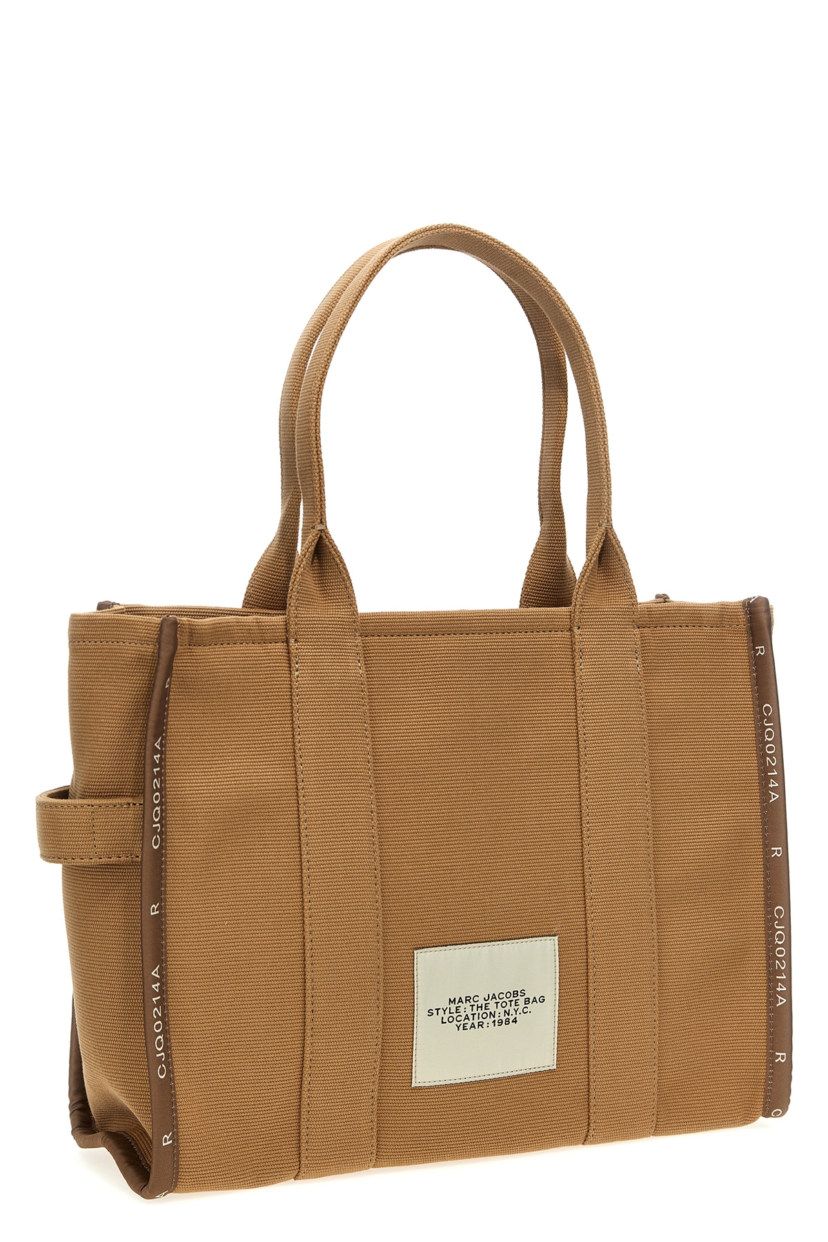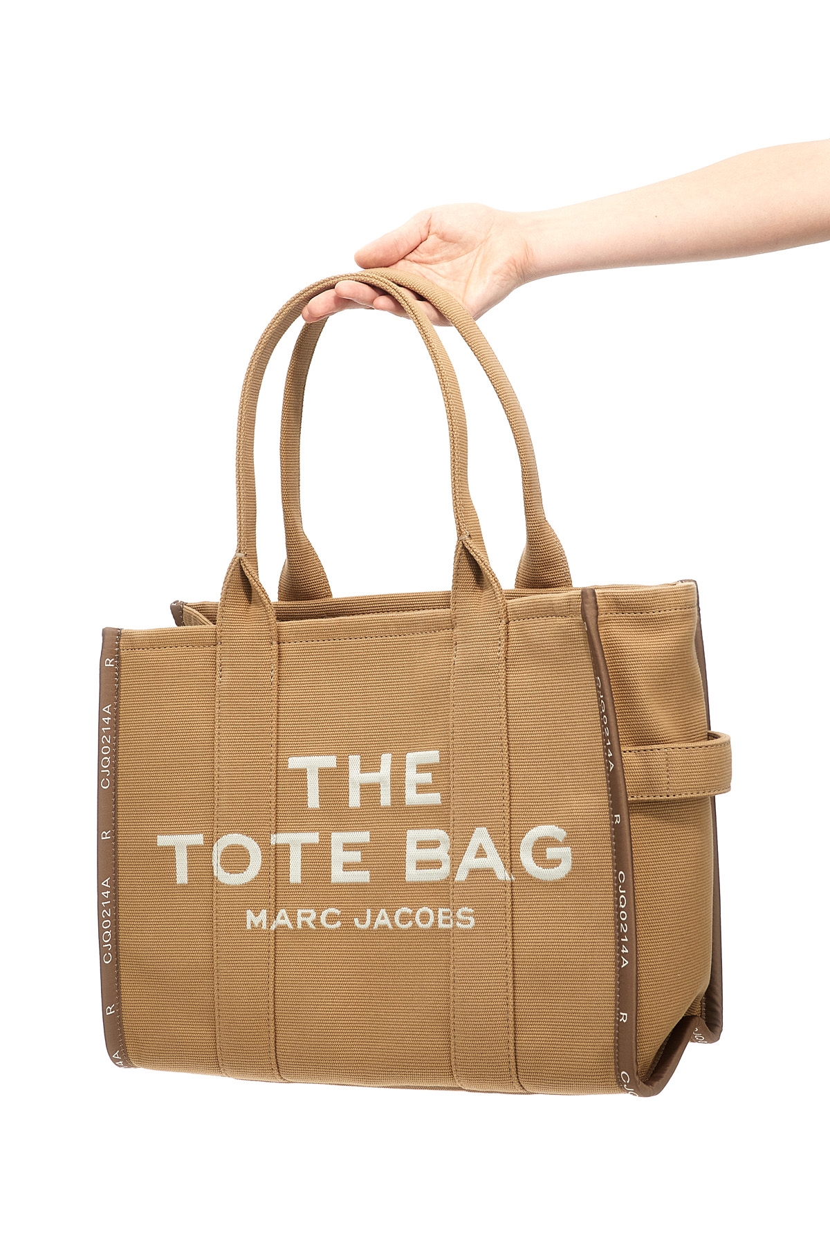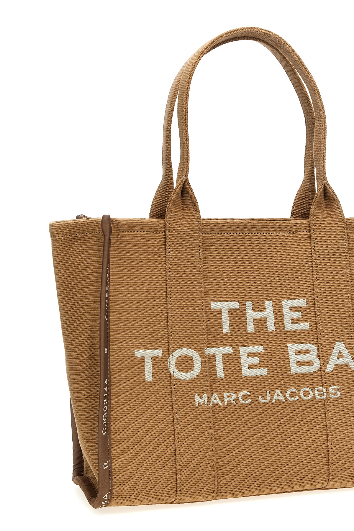 'The Jacquard Large Tote' shopping bag in woven jacquard fabric, top zip closure, double fixed handle, front logo.