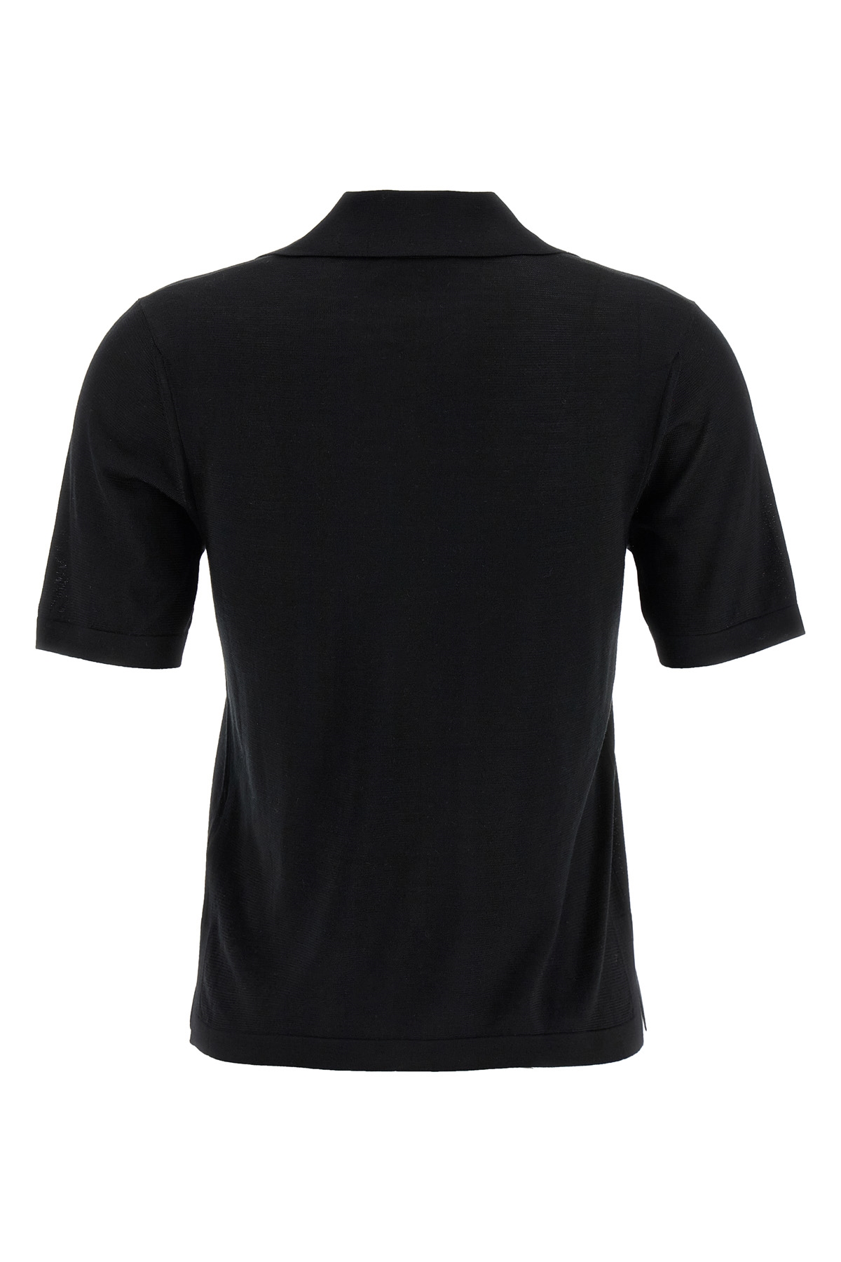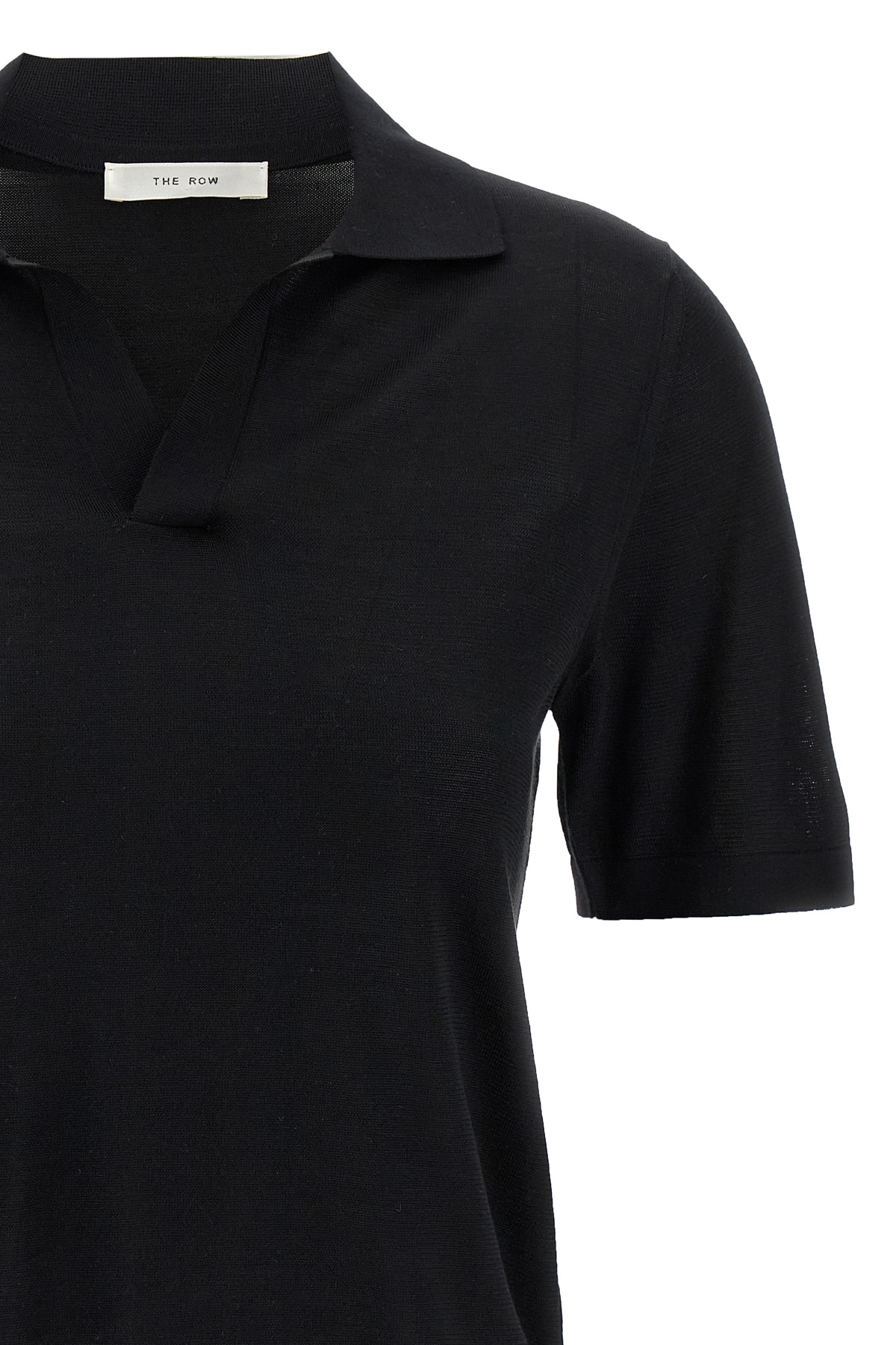 'Julianna' polo shirt in finely worked silk, crop model, V-neck, collar, short sleeves, side slits.