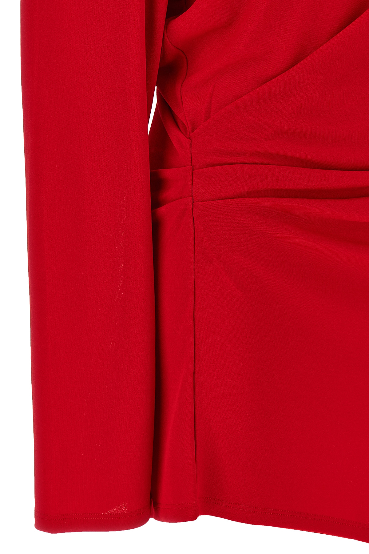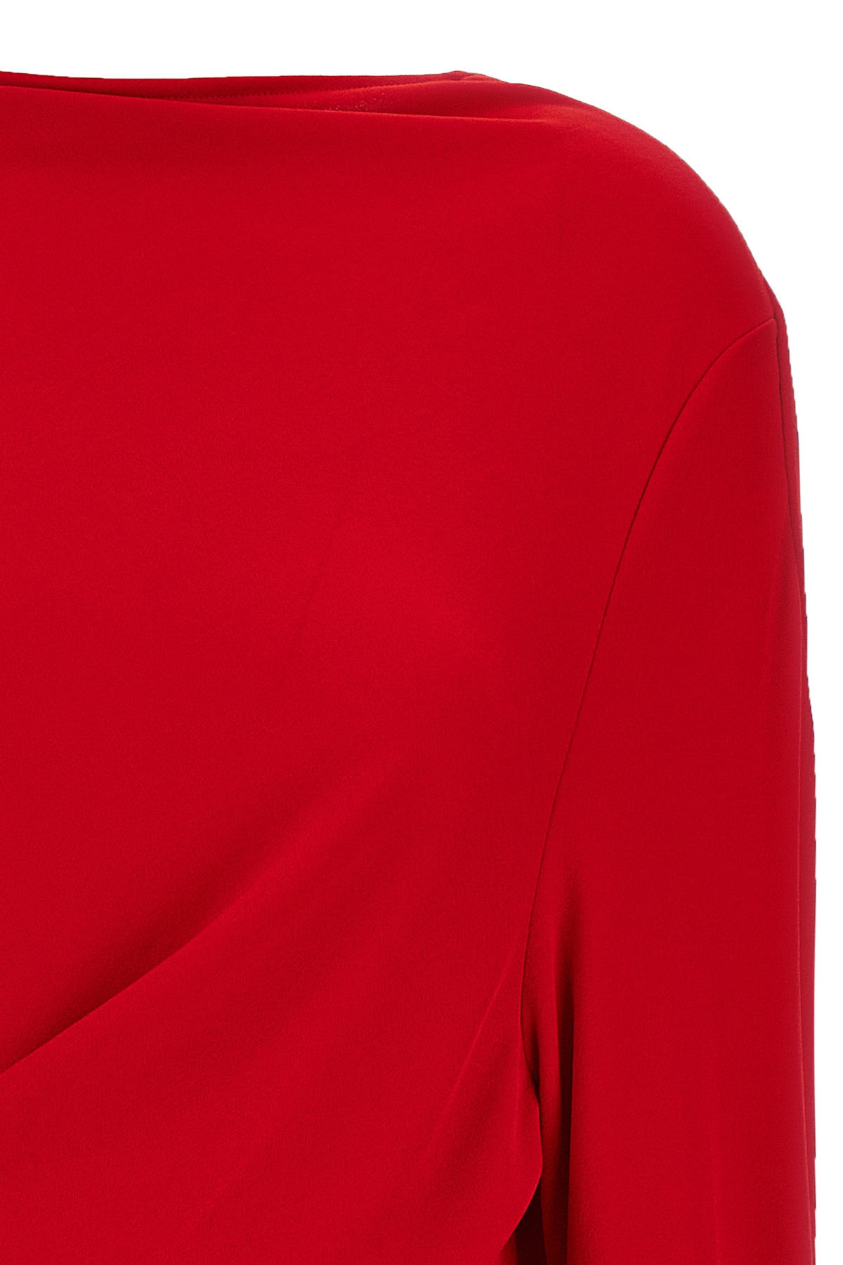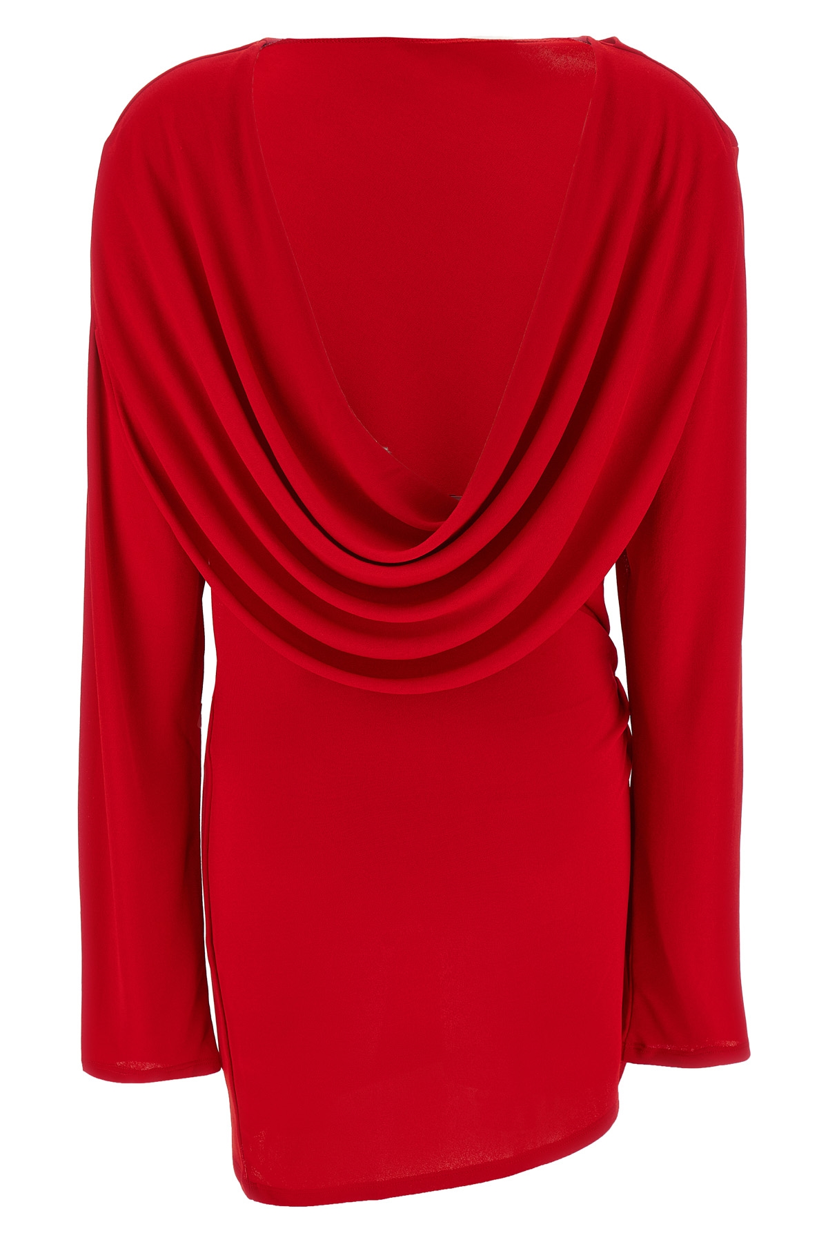 'La Robe Croisiere' fluid jersey crepe mini dress with boat neckline, deep back neckline with draping, long sleeves, crinkled waist on one side.