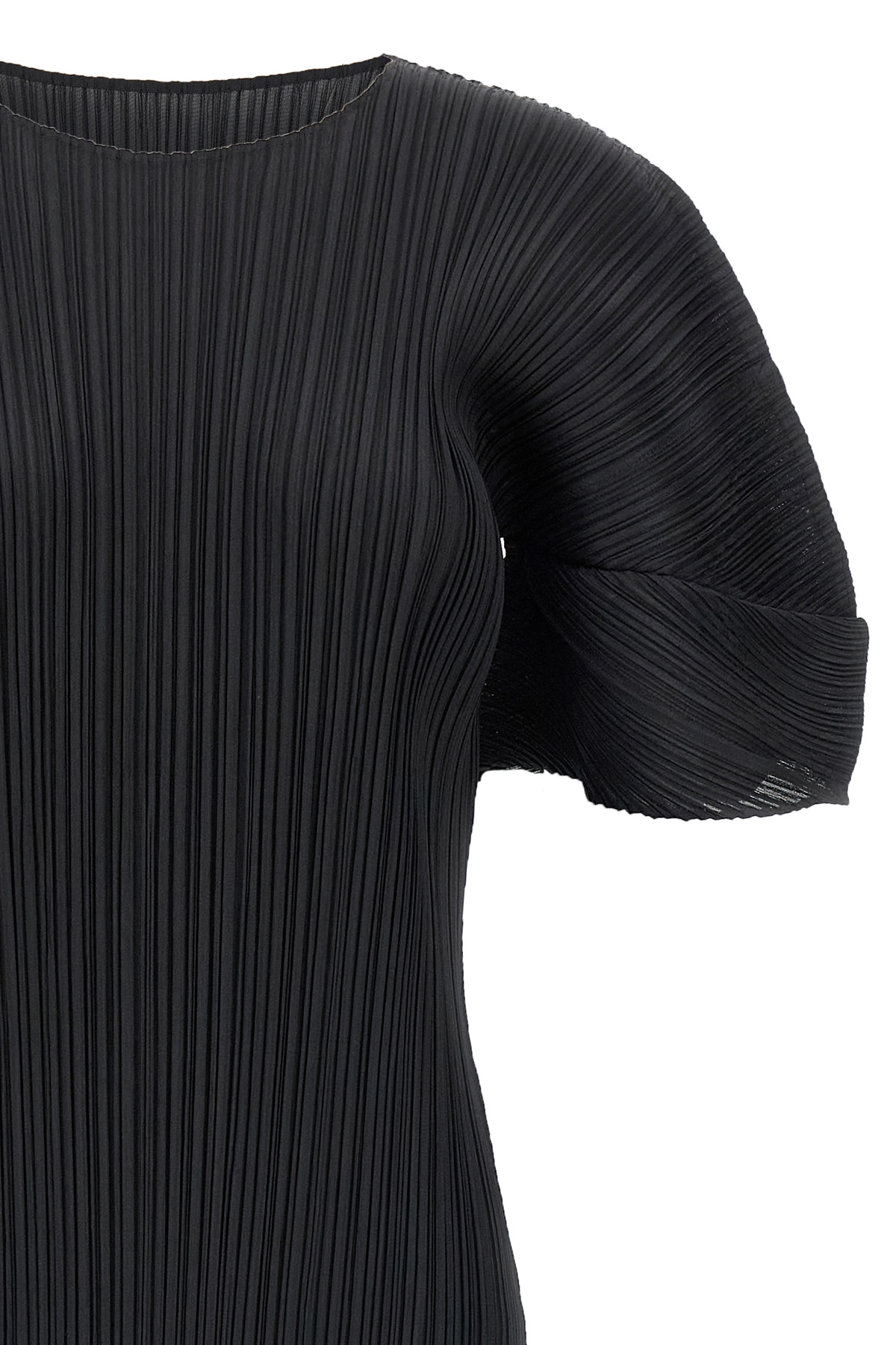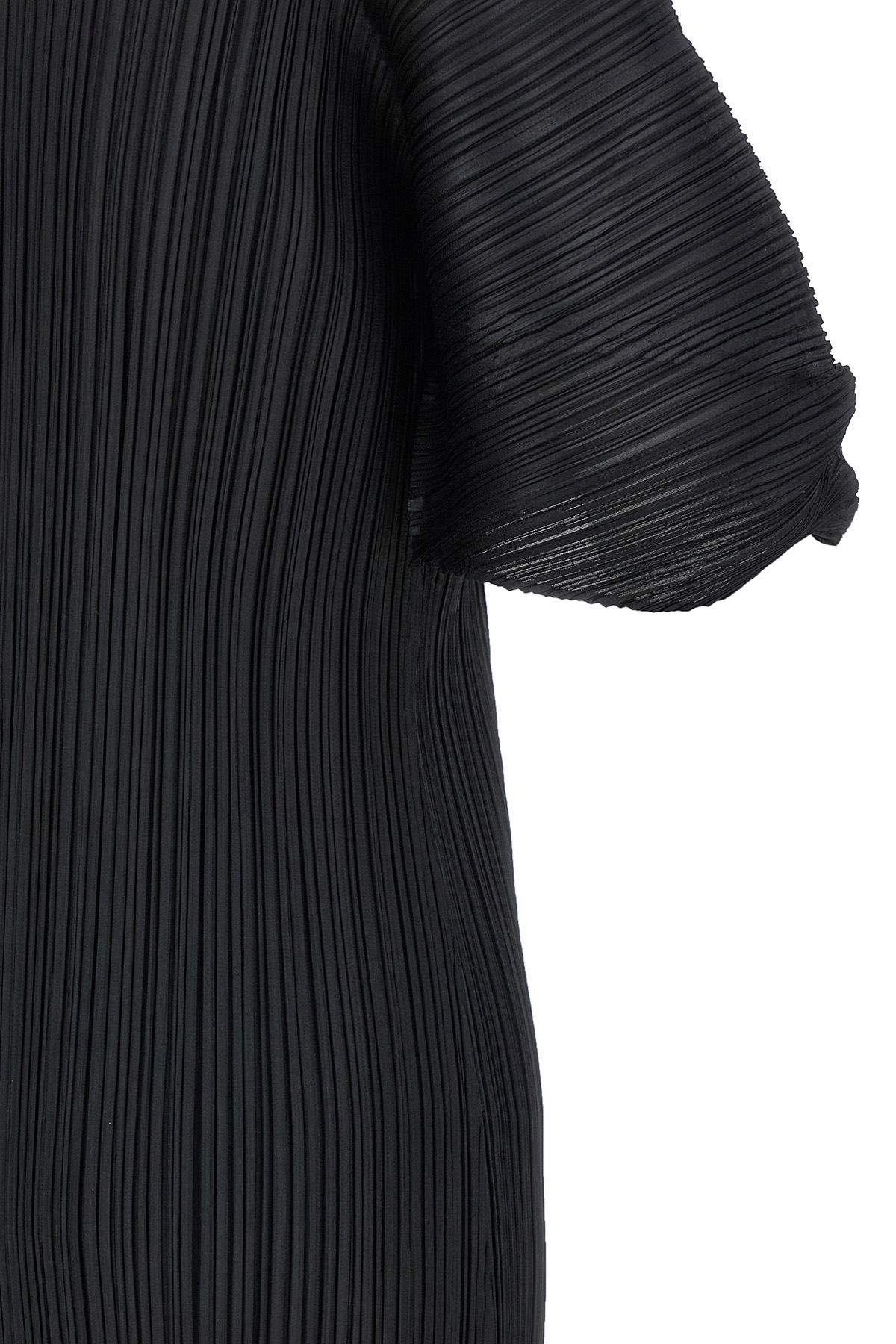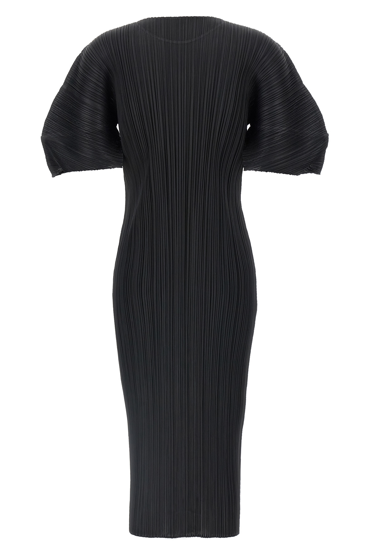 'Monthly Colors: April' pleated midi dress with round neckline, short dolman voluminous sleeves.