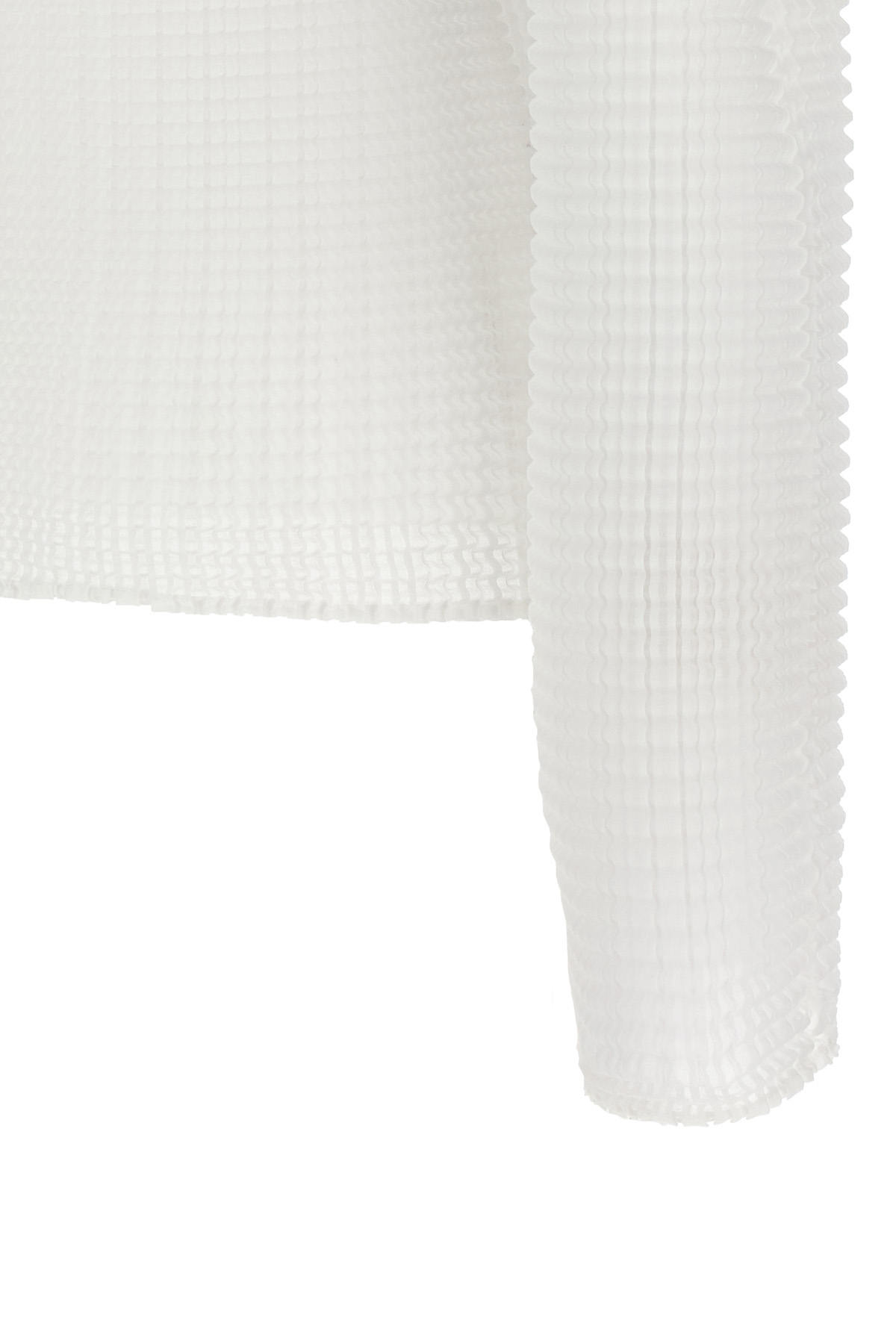 'Wooly Pleats-56' pleated fabric blouse with high neck and long sleeves. SUSTAINABLE: product made from recycled polyester.