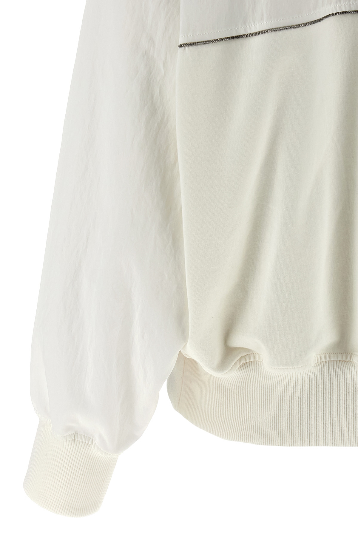 'Paneled' sweatshirt in cotton fleece and viscose Wrinkled poplin with panel construction with Monile 'Shiny Trims' details, front zip closure, pockets, long cuffed sleeves and dropped shoulders.