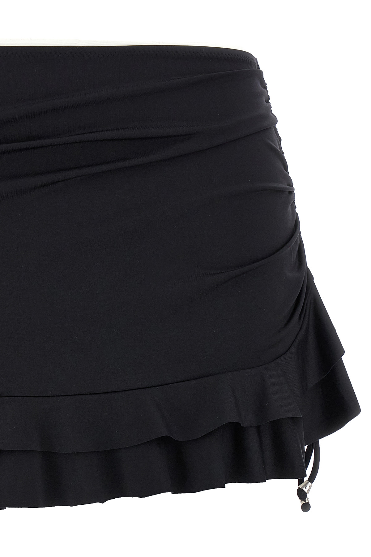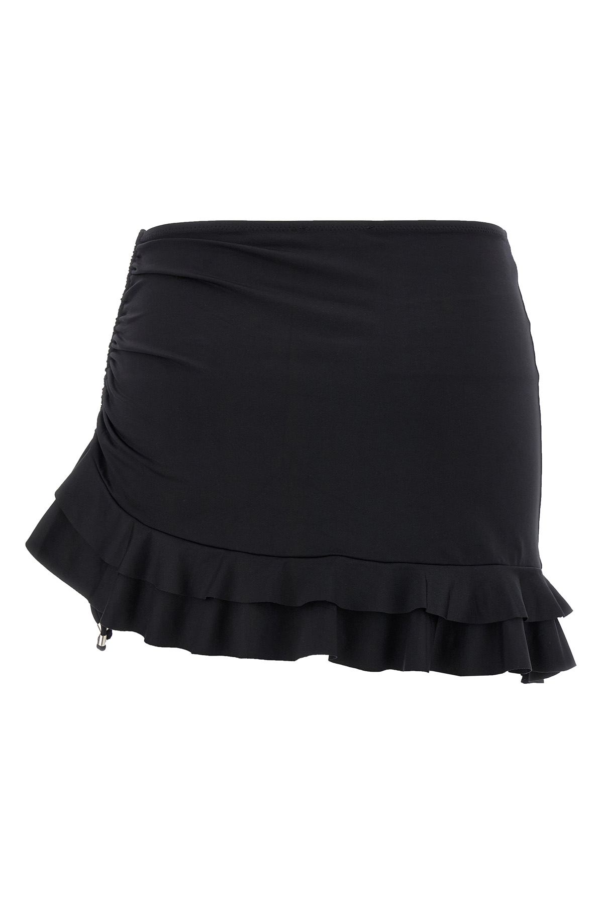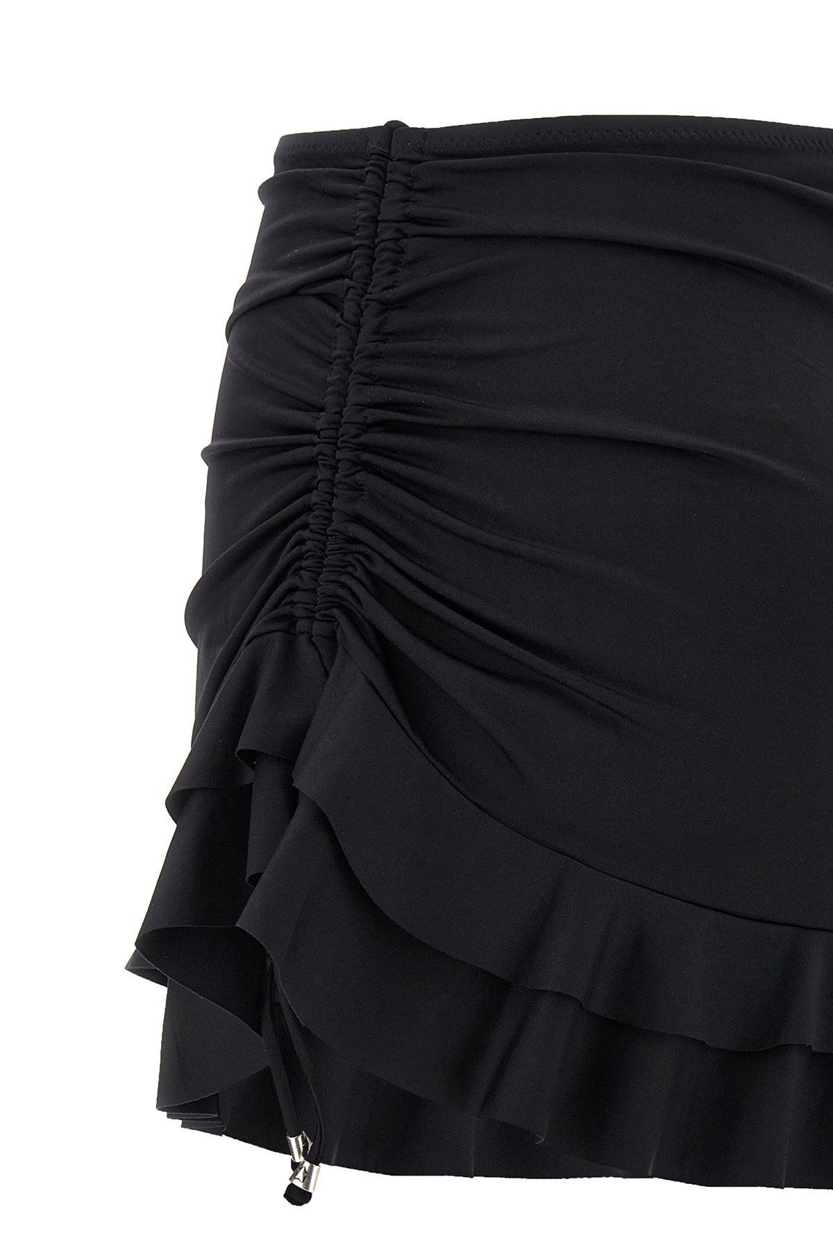 Lycra mini skirt, elastic waistband, side drawstring to adjust height and curl, flounces on the hem.