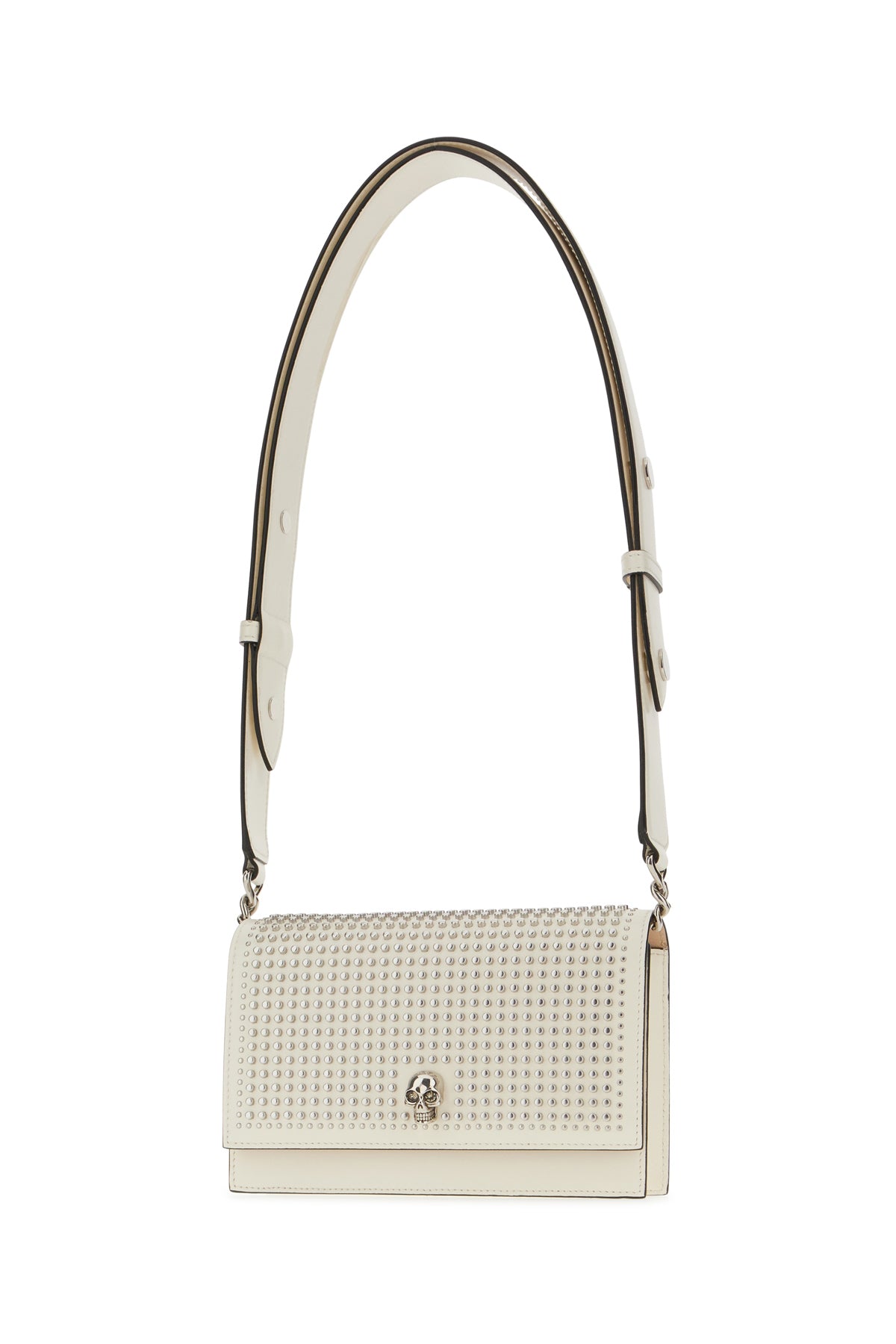아이보리 레더 스몰 바이커 스컬 숄더 백