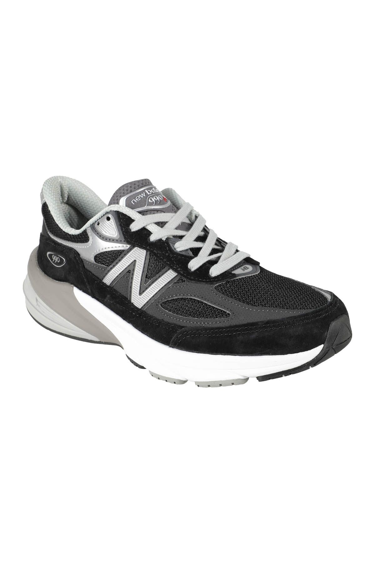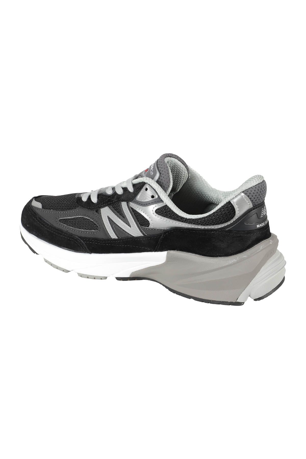 Black and gray New Balance sneakers, model 990 with suede and fabric upper with side logo, round toe, lace-up fastening, rubber sole.