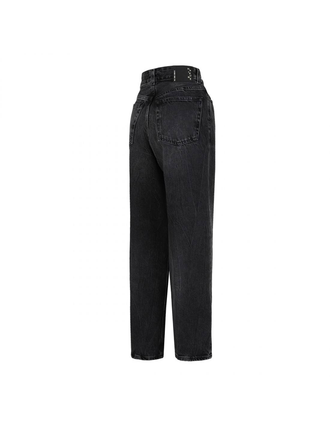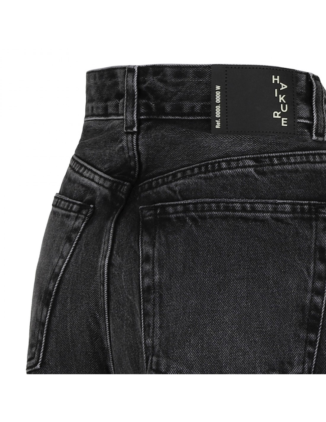 Black denim Betty jeans from Haikure featuring belt loops on the waistband, classic five pocket style, whiskering effect, back logo tag, wide leg, concealed fly and button fastening, ankle length.
