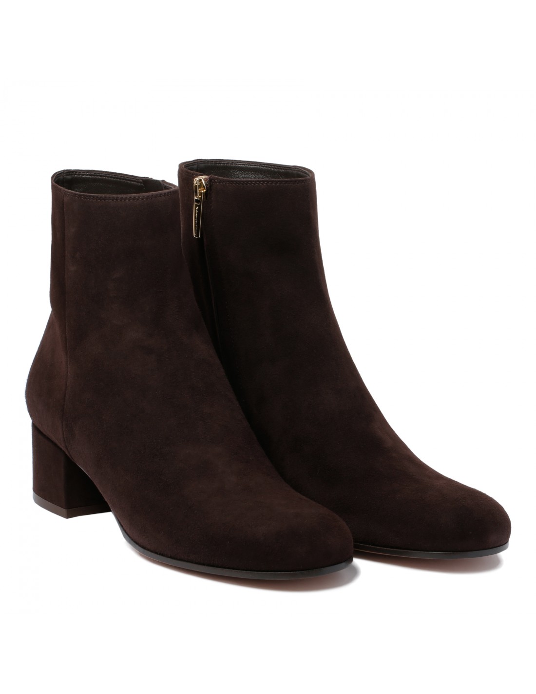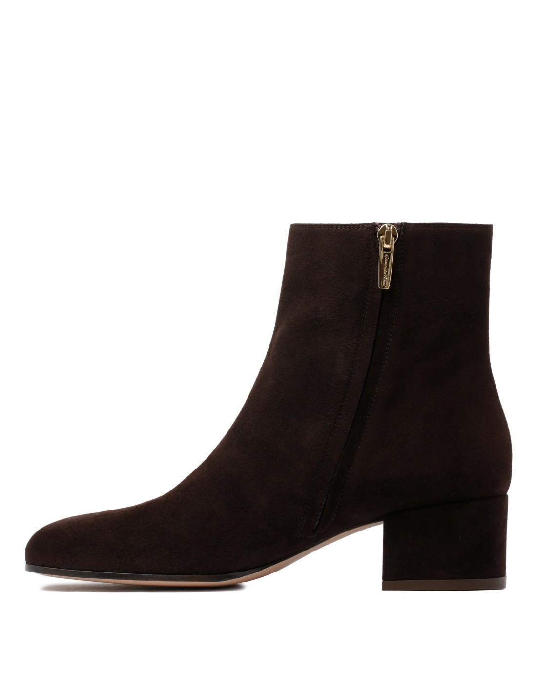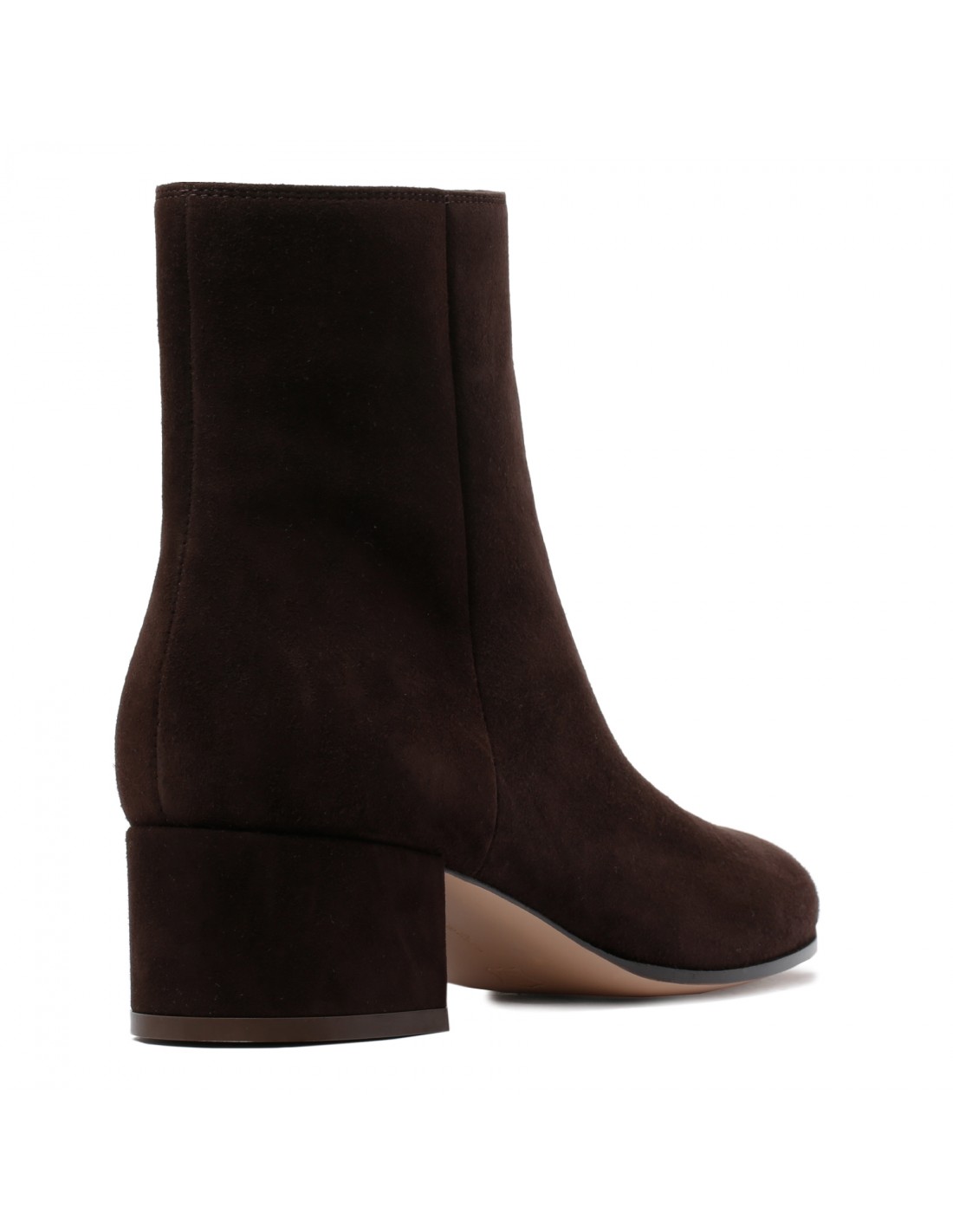 Moka hue suede Joelle 45 booties from Gianvito Rossi featuring rounded toe, zip fastening along internal side, 45 block heel, leather insole and sole.