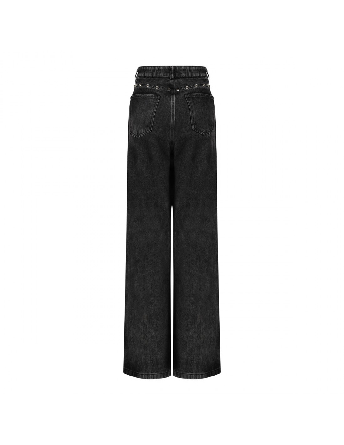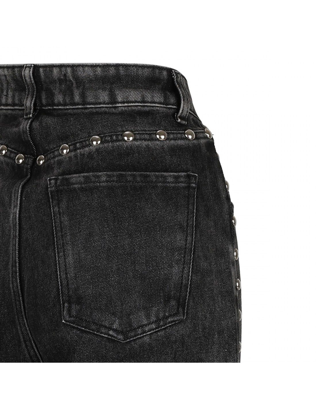 Dark gray denim jeans from Federica Tosi featuring studs detail along side and back, classic five-pocket style, button closure and zip fly, belt loops on the waistband, wide leg.