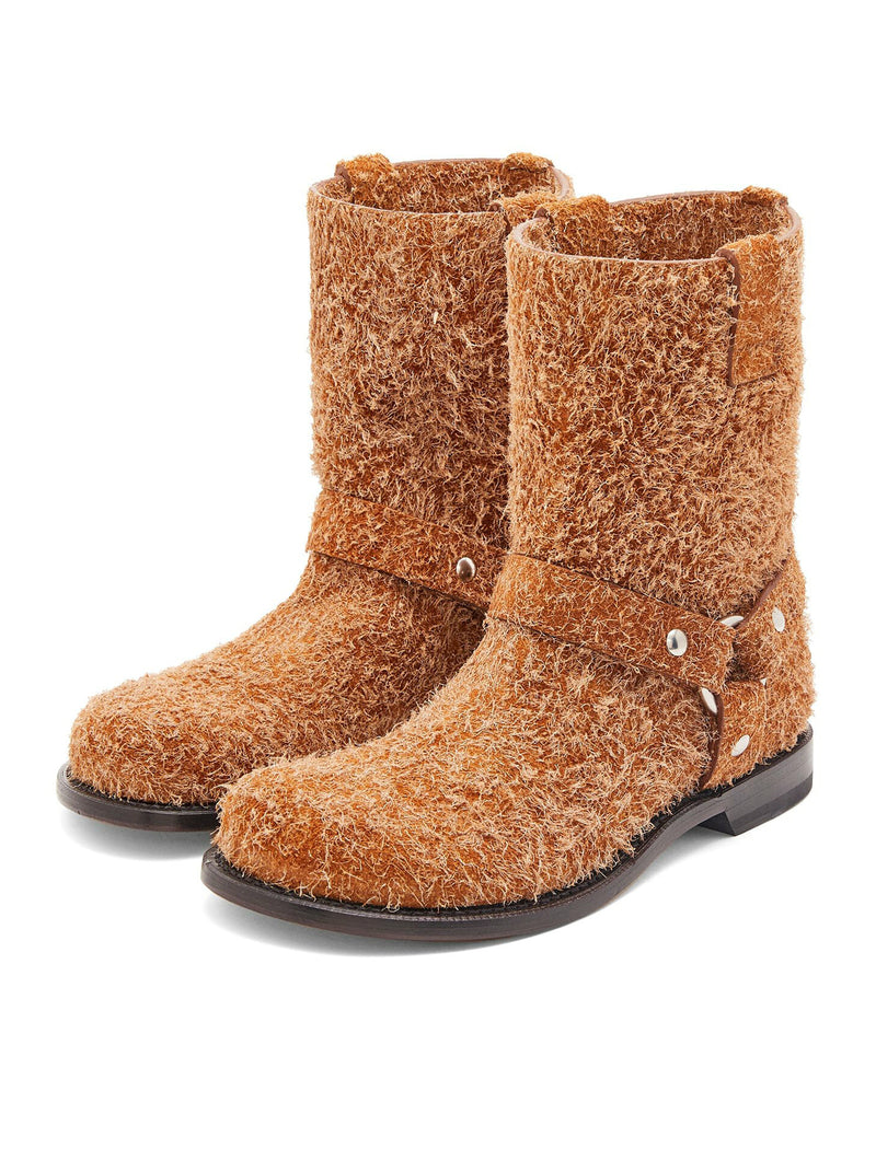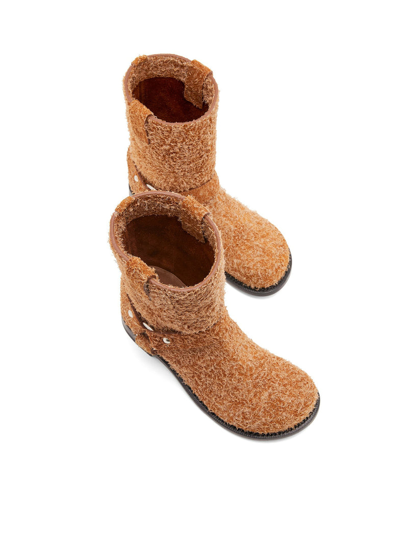 -biker boots made of brushed suede -with metallic details -loops with LOEWE Anagram motif embossed on the side for easy putting on -heel: 30 mm -Goodyear construction with leather sole