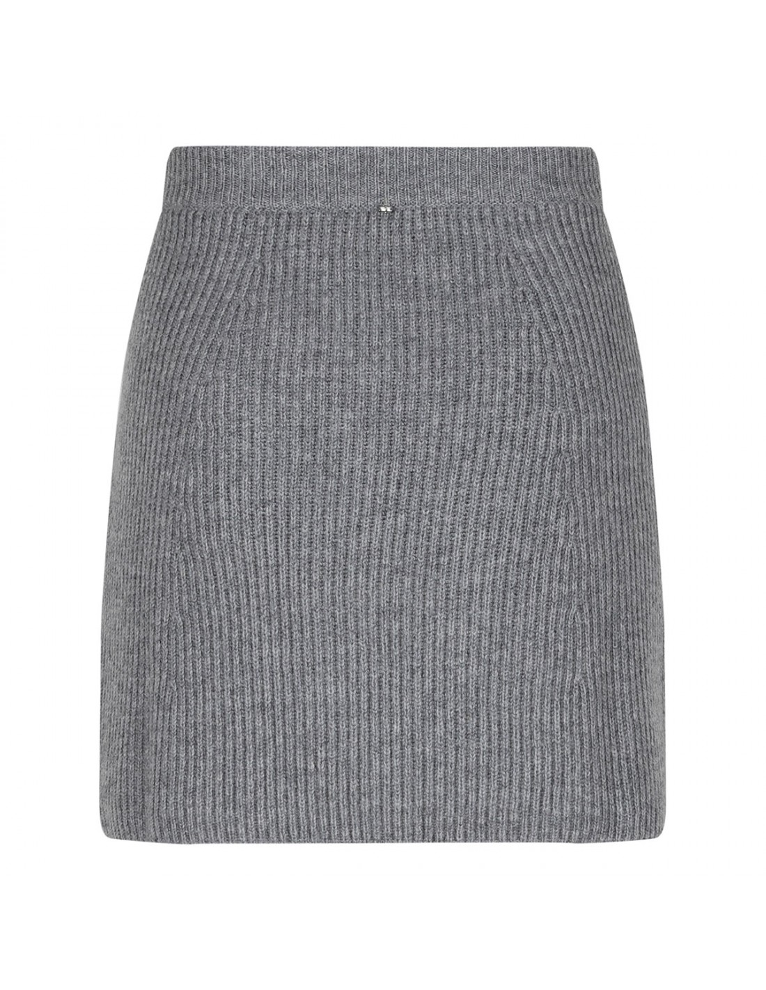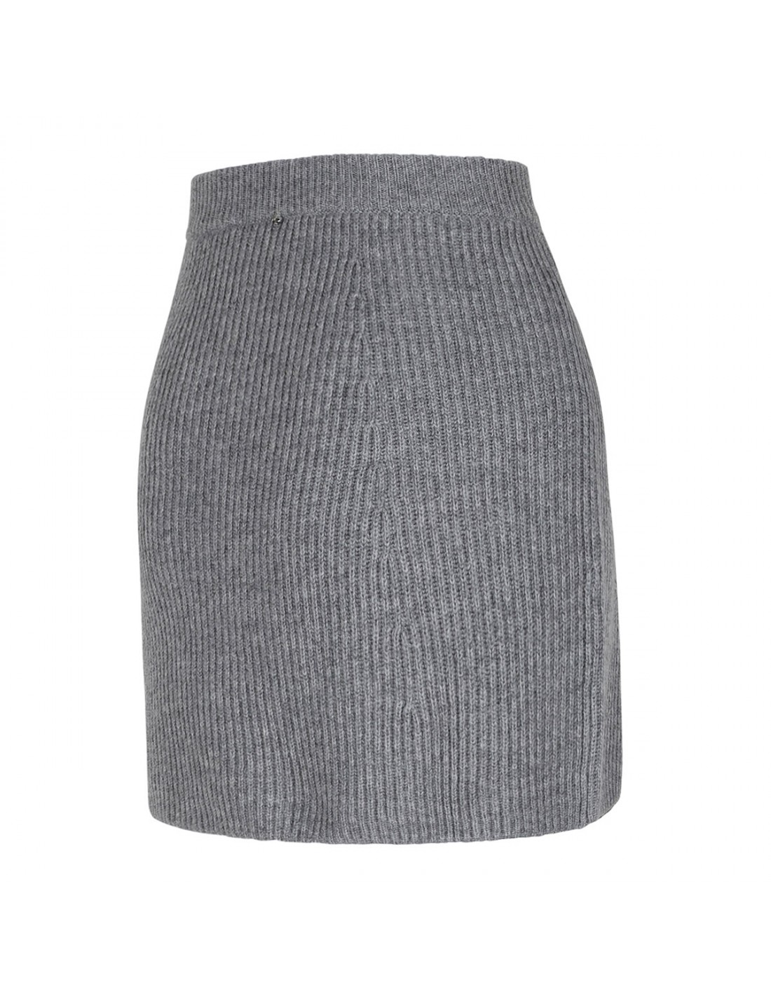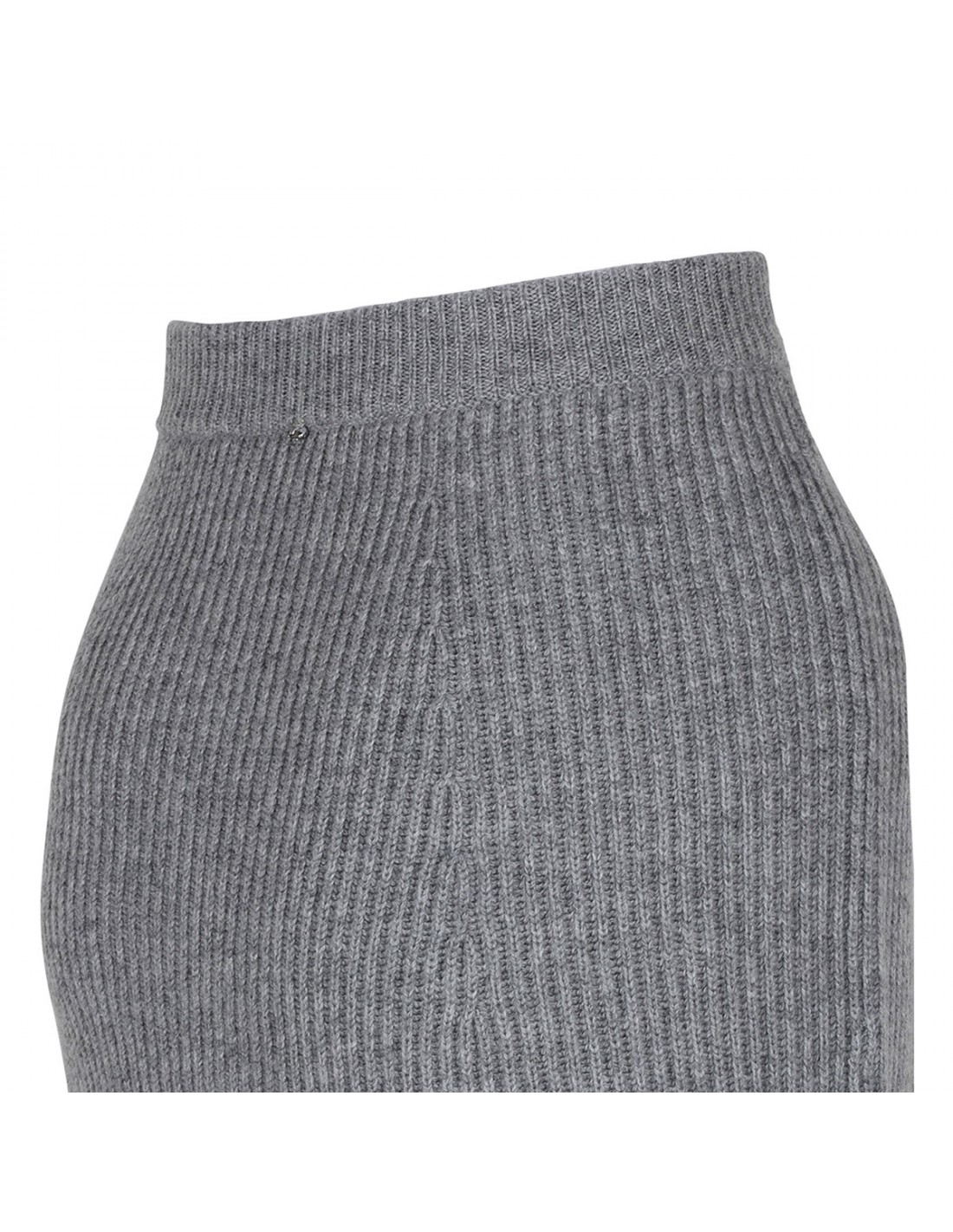 Gray ribbed-knit wool and cashmere blend skirt from Sportmax featuring slim-fit, high waist, internally-elastic waistband, slip-stitch details on front and back.