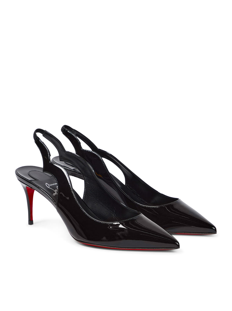 - V-shaped notches around the ankle - Slim 70mm heel and intricate stitching - Crafted from black patent leather