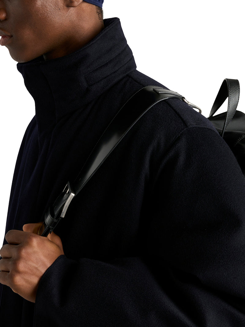-Oversized fit -Raised collar -Straight sleeve -Zip and button fastening -Side pockets -Straight cuff -Wide shoulder -Straight hem -Unlined -Heat-taped construction -Removable hidden hood -Triangle logo in fabric -Internal enamelled metal triangle logo -Garment with removable goose down padding