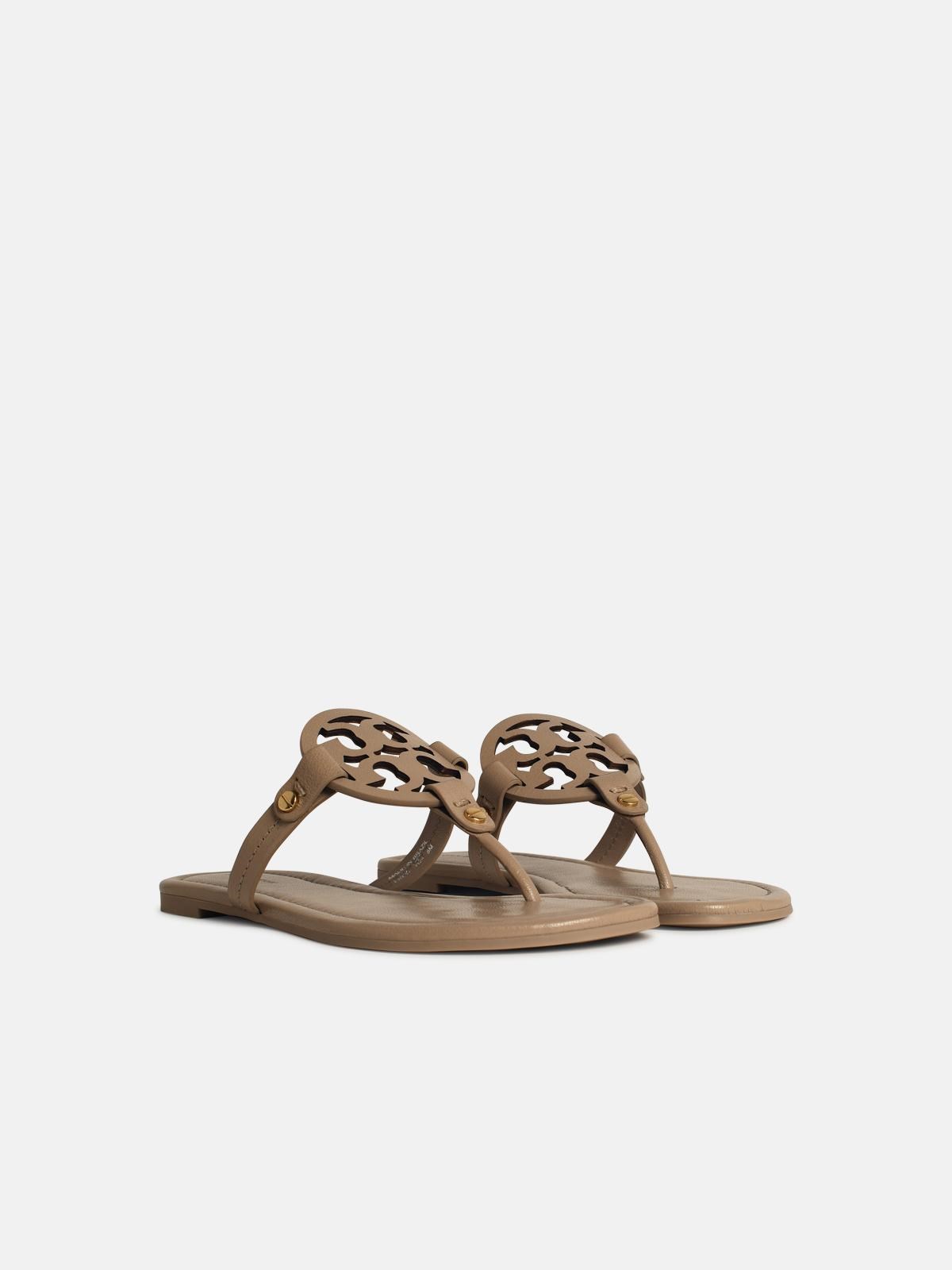 > MILLER 베이지 레더 플립플랍