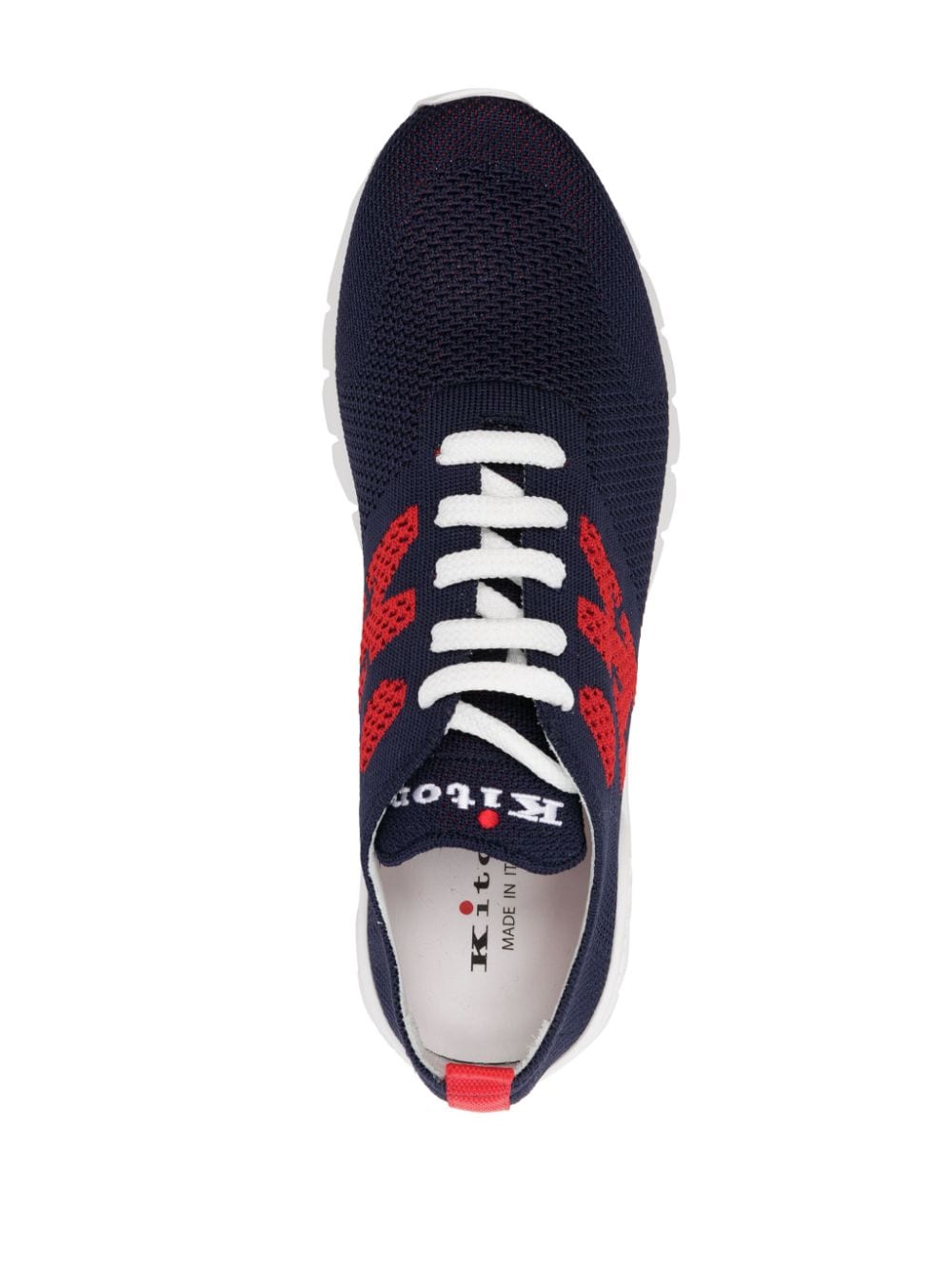 blue/red/white mesh design EVA outsole jacquard logo motif logo-embroidered tongue embossed logo to the side pull-tab at the heel almond toe front lace-up fastening branded insole ridged rubber sole