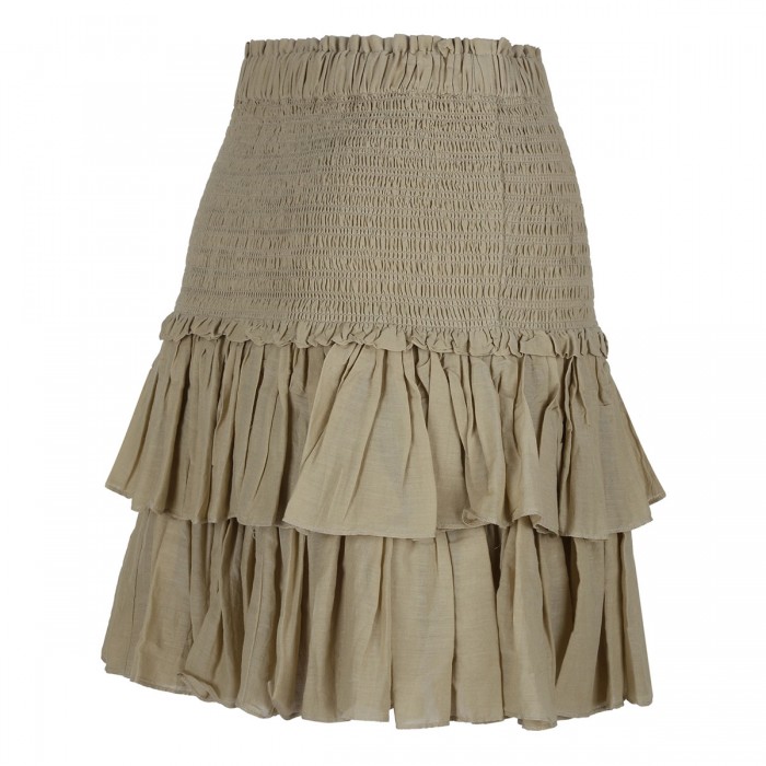 Light khaki cotton voile Naomi mini skirt from Isabel Marant Etoile featuring smocked detail, elastic waist, rows of frills, high waist and cotton lining.