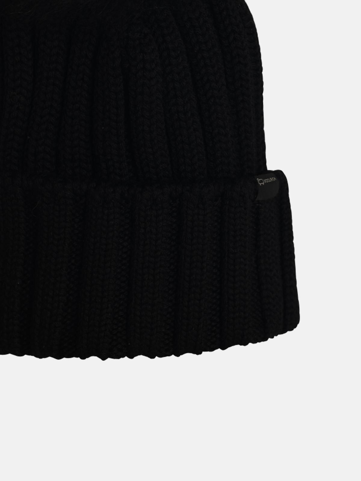 'PON PON' BLACK VIRGIN WOOL BEANIE