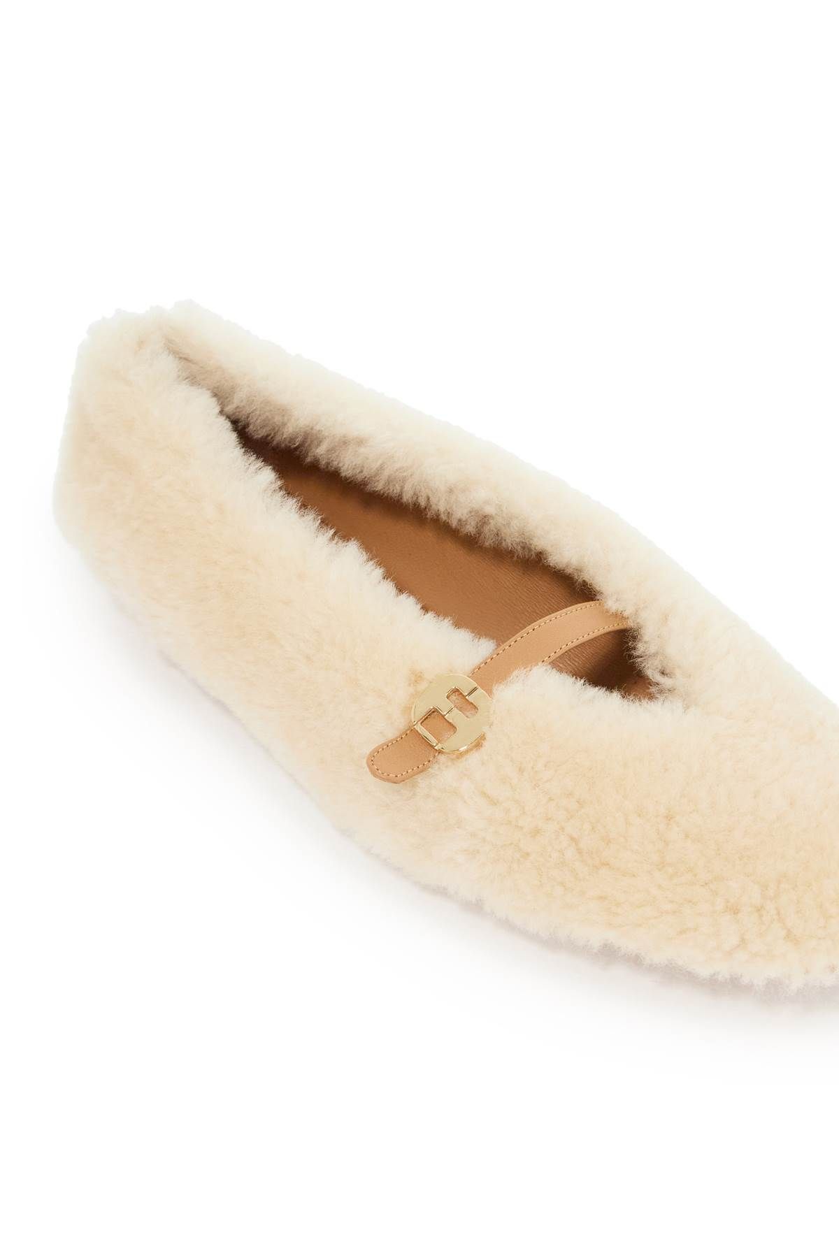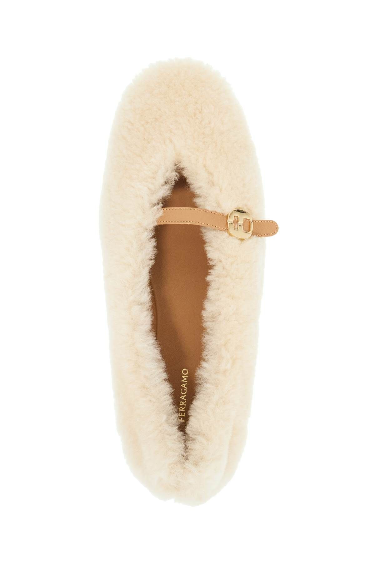 FERRAGAMO ballerinas made of soft shearling and finished with a complete nappa leather strap and golden buckle