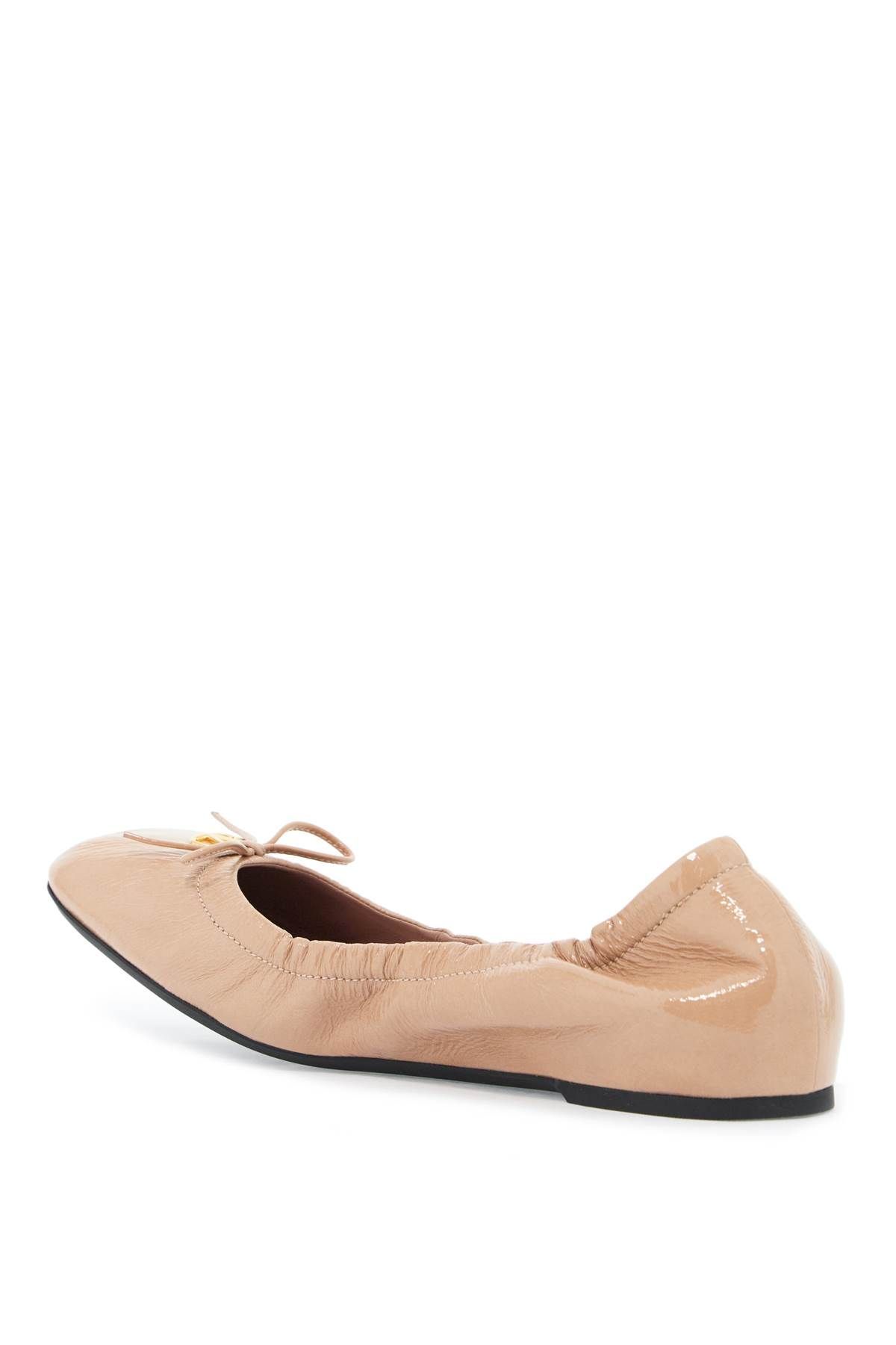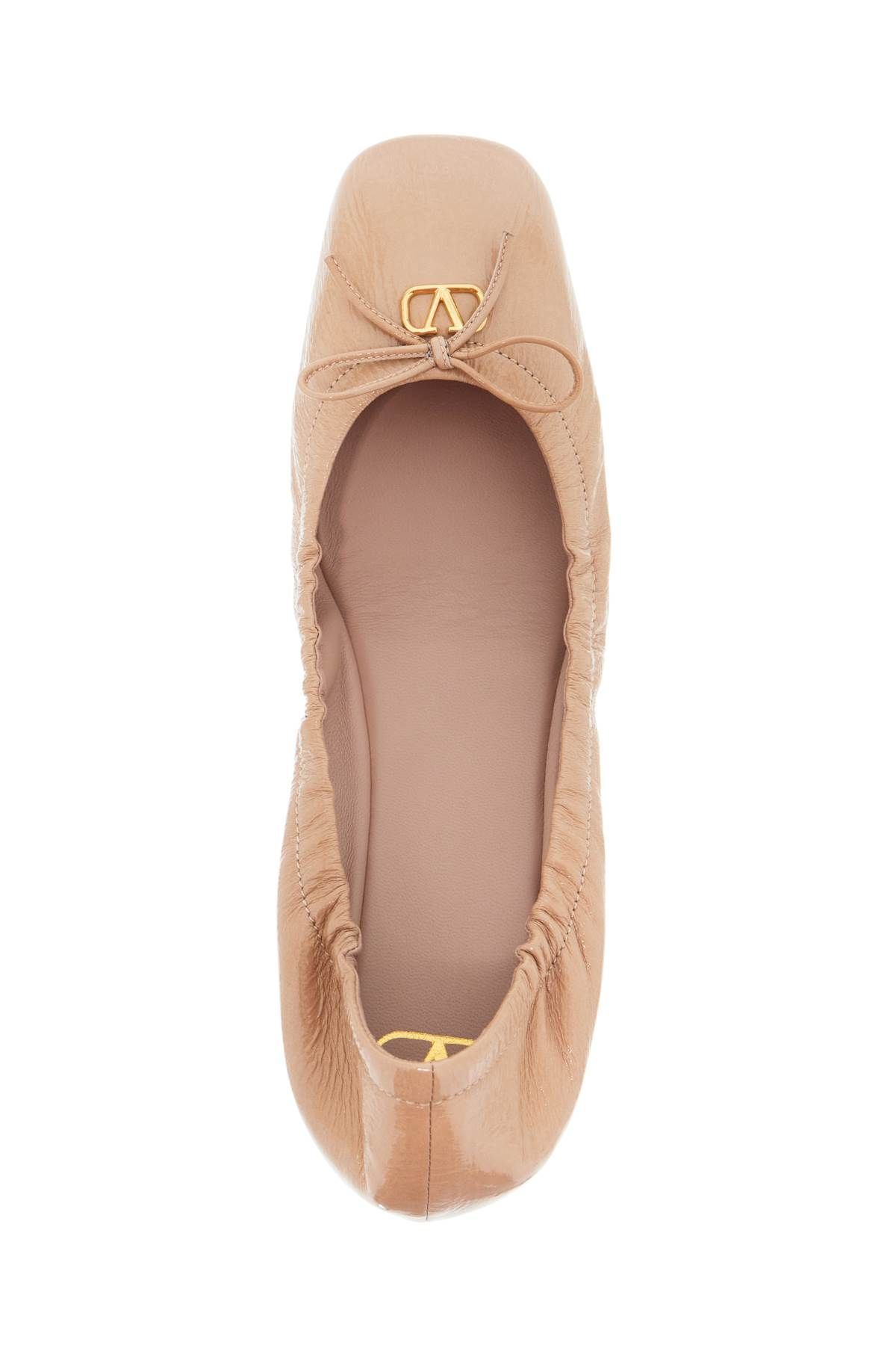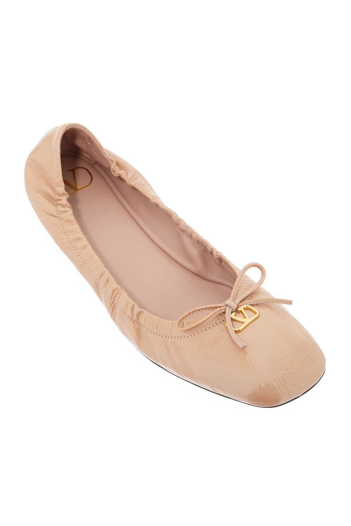 Valentino Garavani ballerina flats made in Venice with ruffled edges, VLogo Signature brass finish with antique effect and leather bow applied on the toe