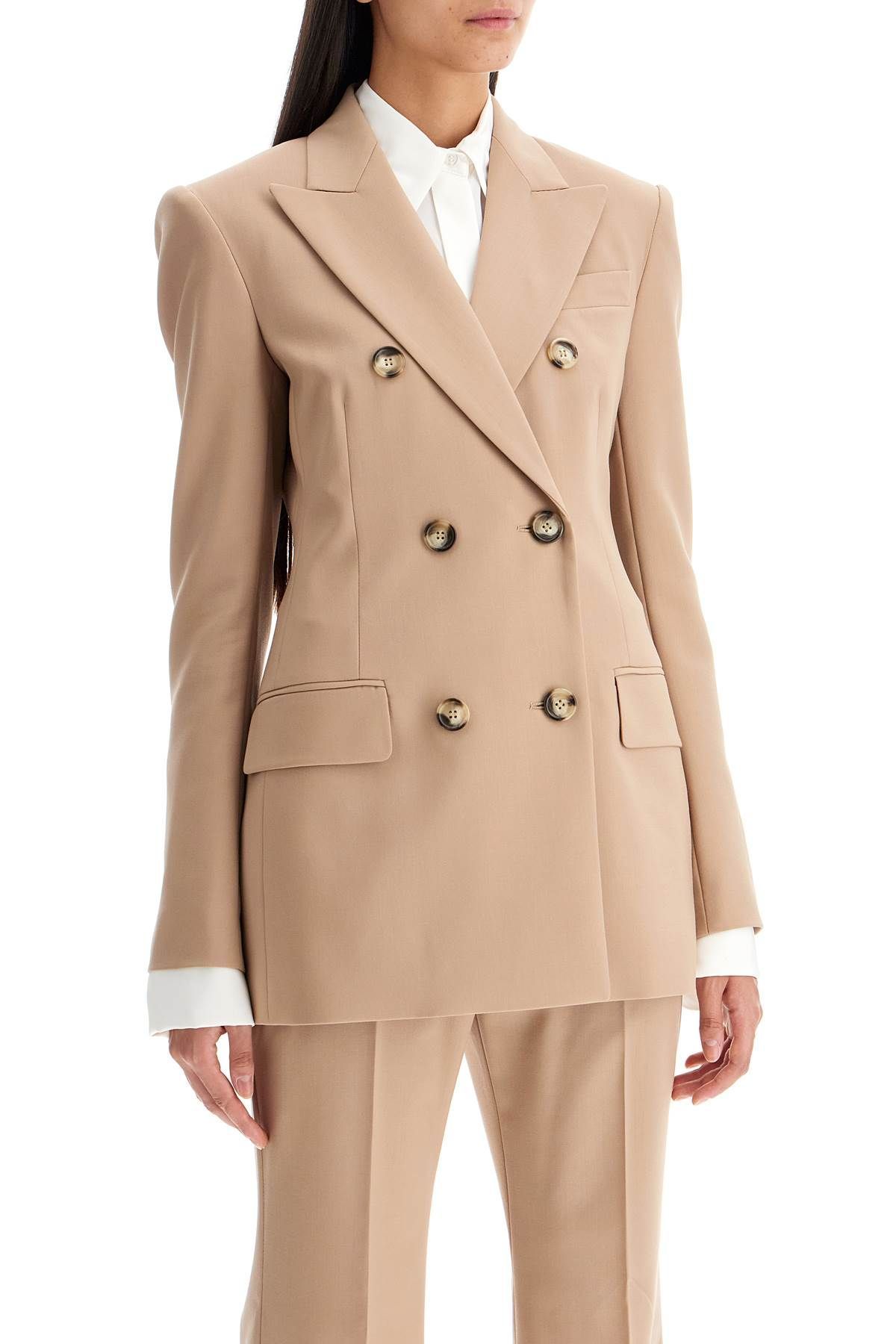 This Sportmax tailored blazer is made of pure natural stretch virgin wool with a slim and tapered feminine silhouette and a double-breasted closure