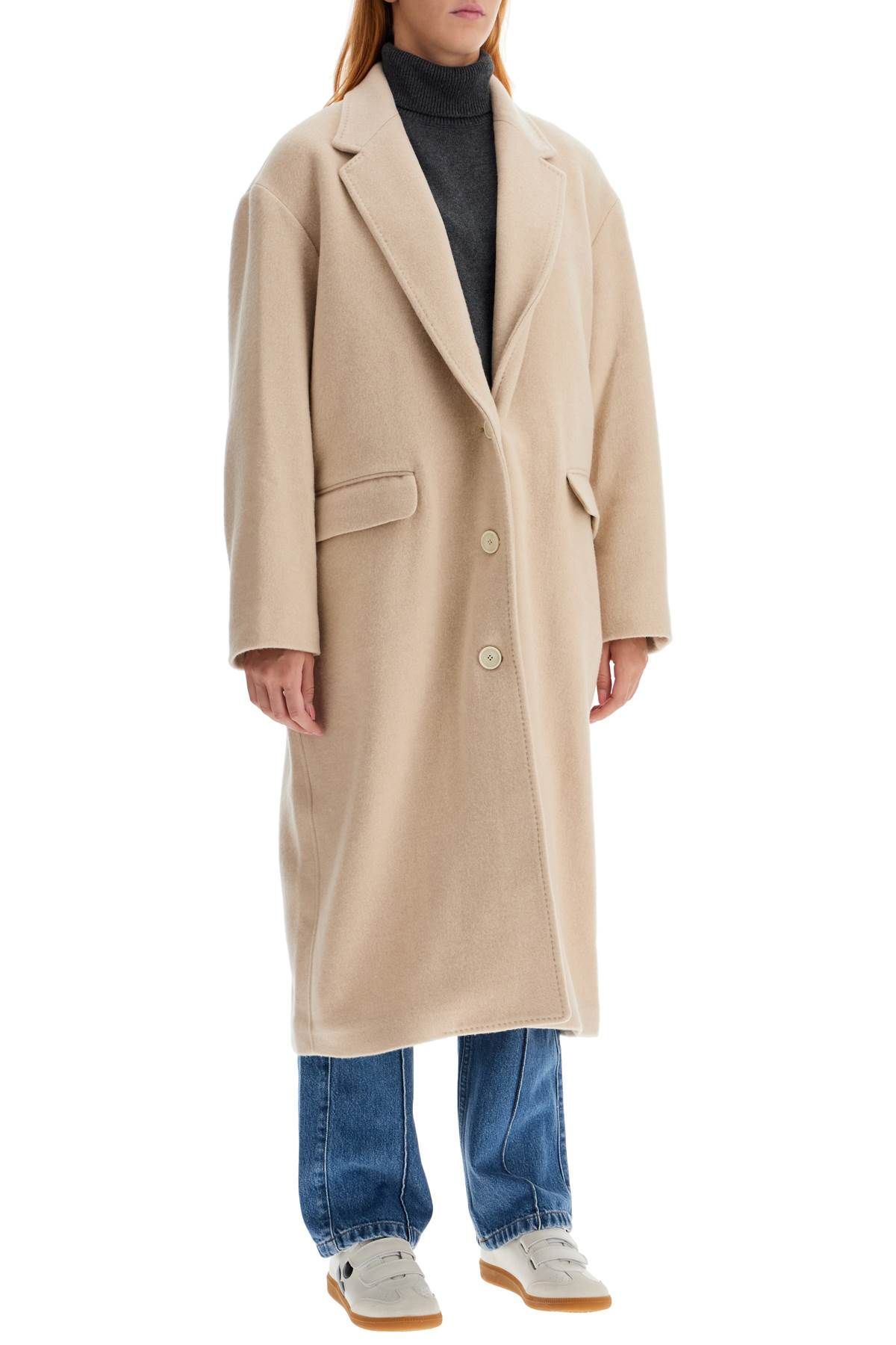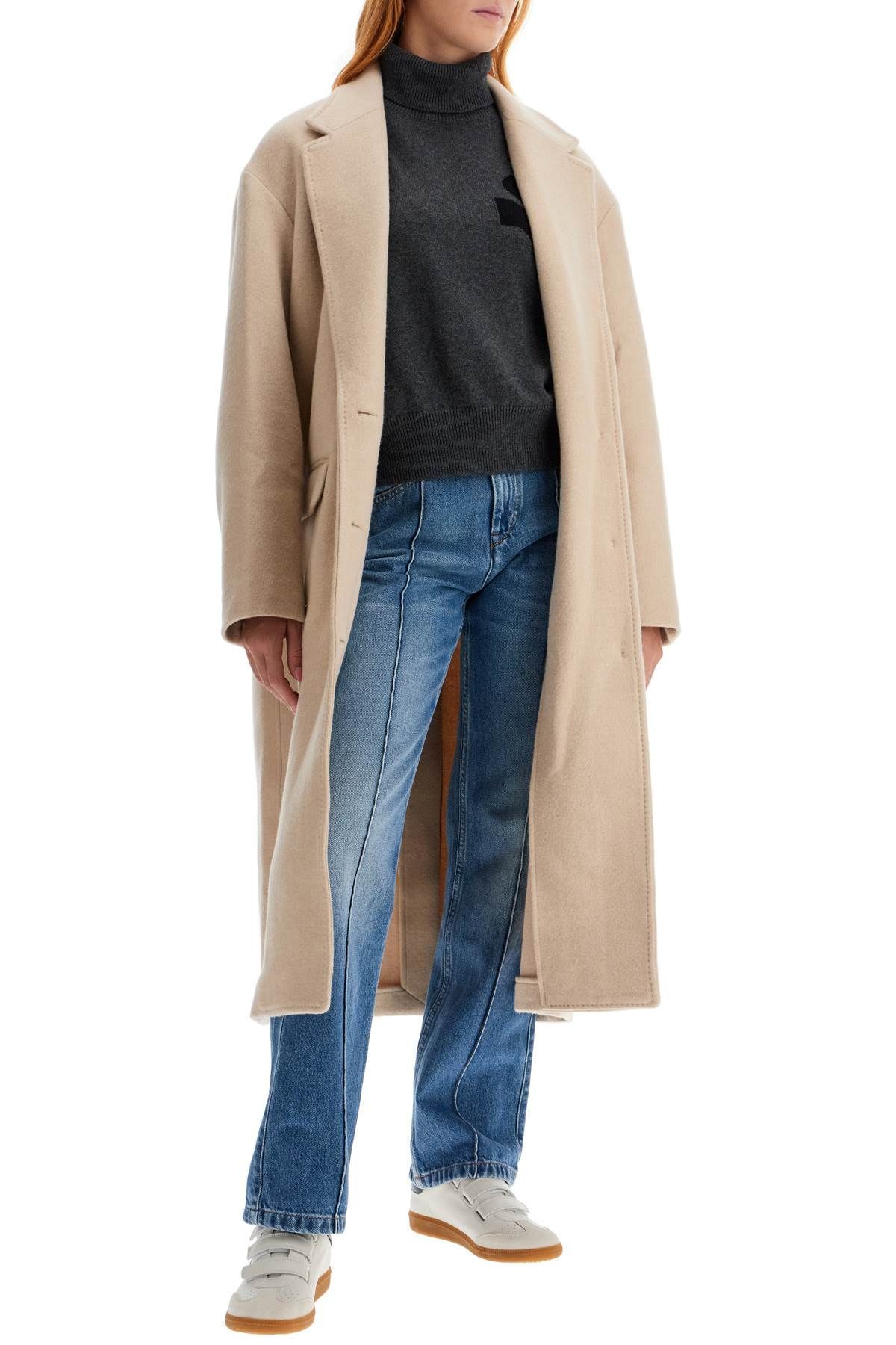 This long Isabel Marant coat is made of soft double wool fabric with recycled cashmere
