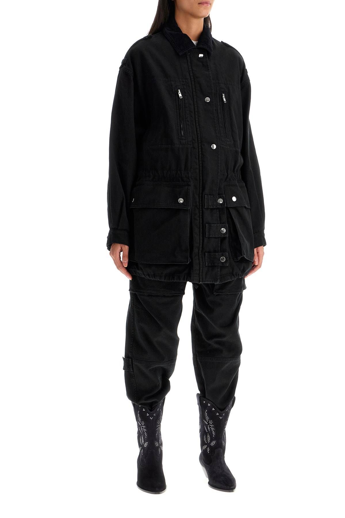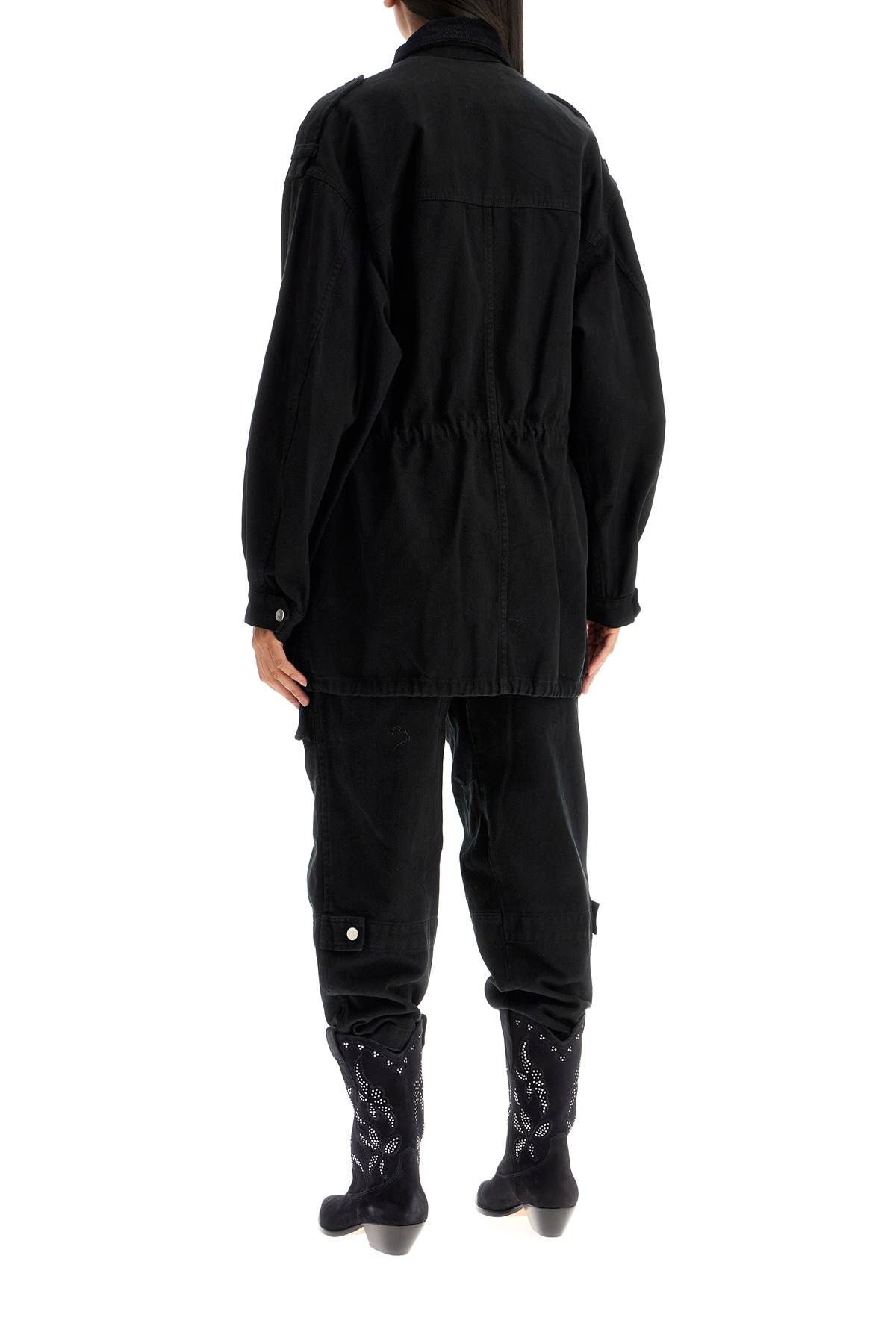 The Marant Etoile denim jacket is characterized by a relaxed fit with dropped shoulders and a length below the hip