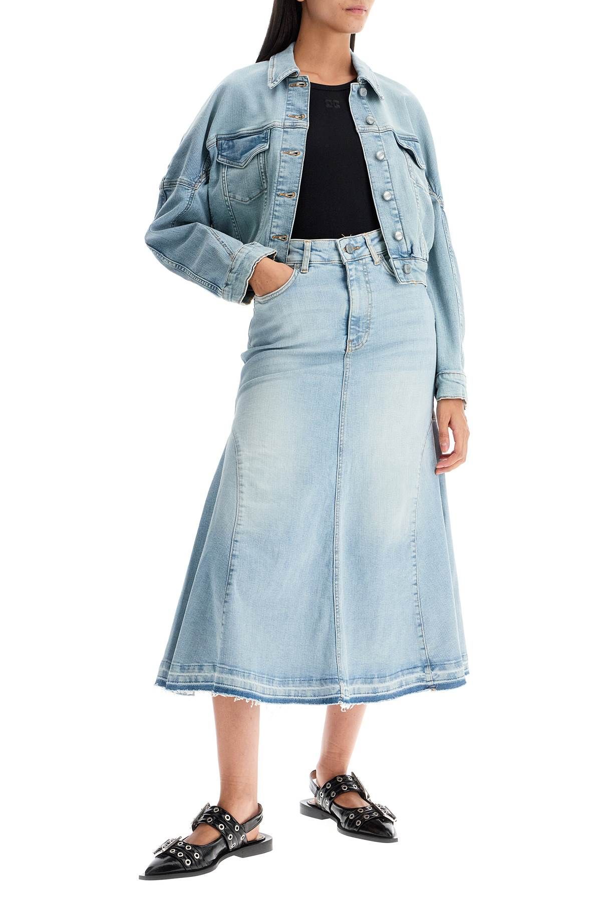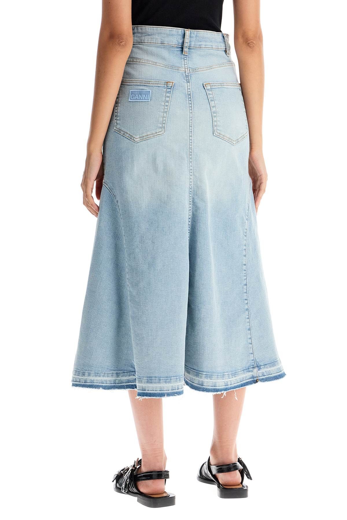This midi skirt by Ganni is made of light wash organic stretch denim with a five-pocket construction
