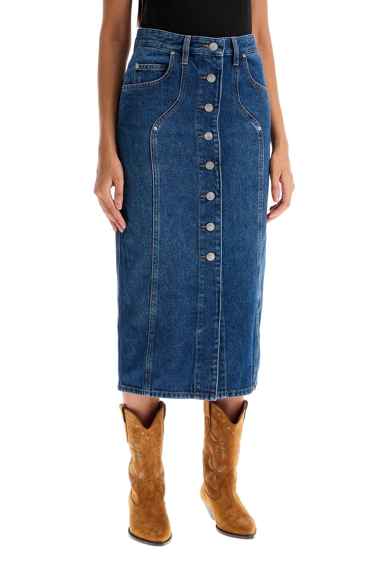 This Marant Etoile denim skirt features a straight, pencil cut with a calf-length hem