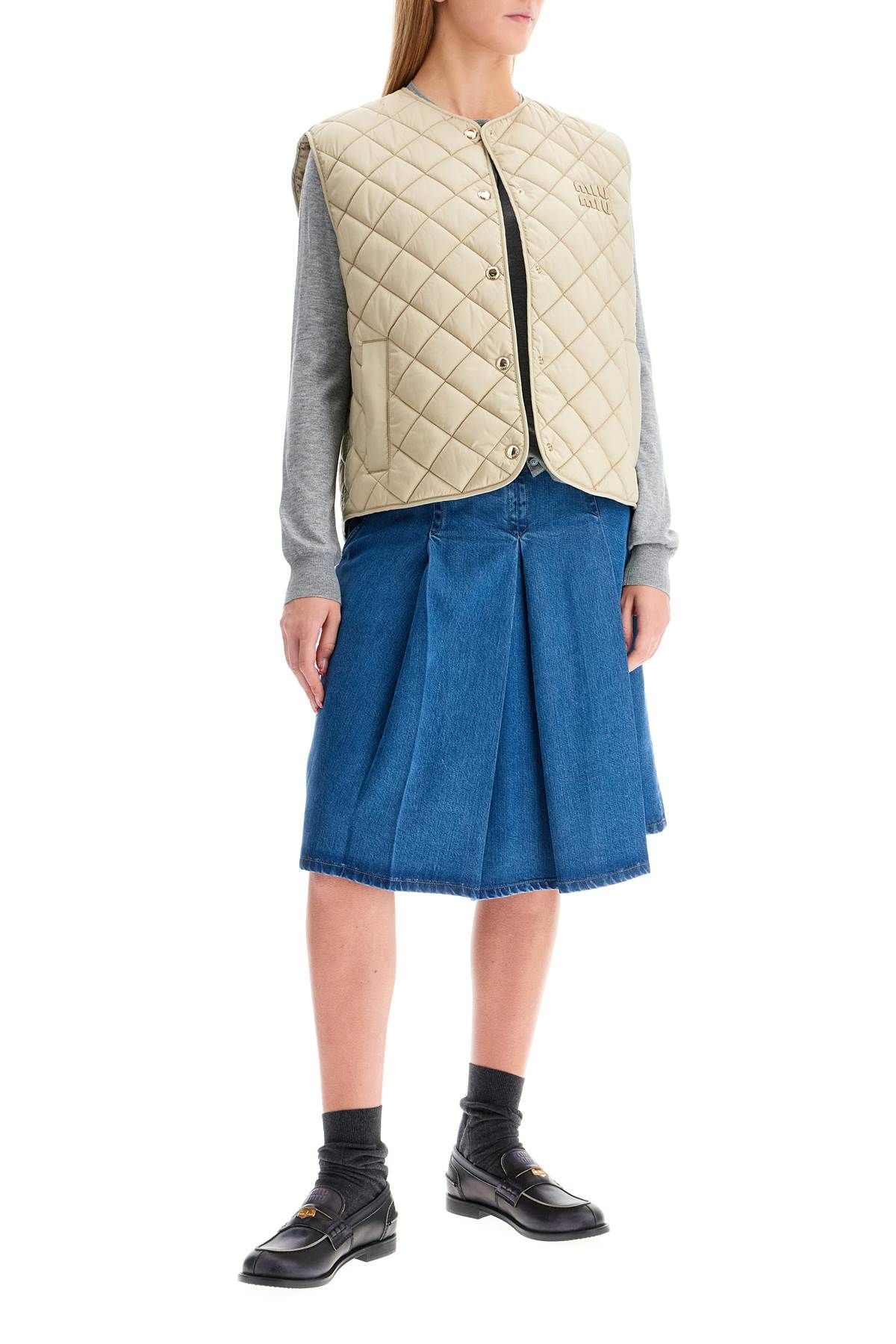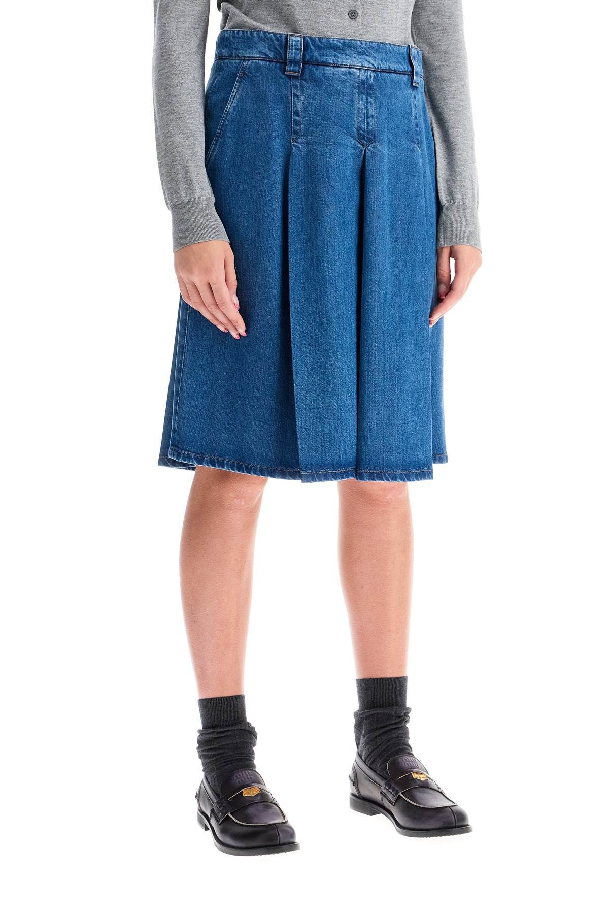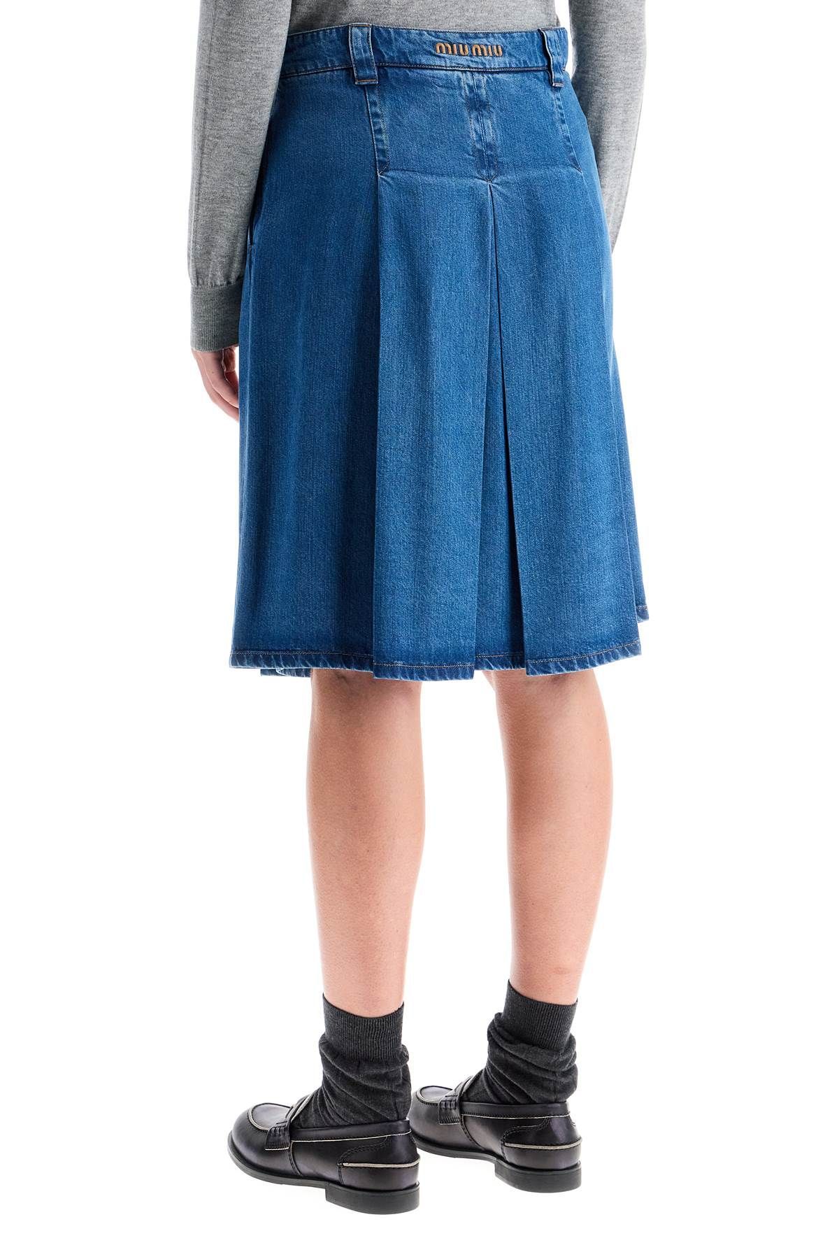 This Miu Miu midi skirt is made of lyocell chambray and features a pleated structure that gives it a dynamic look