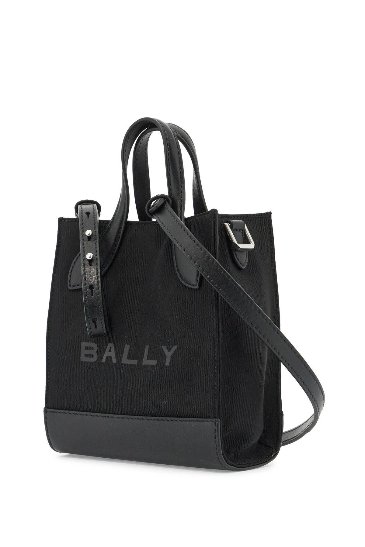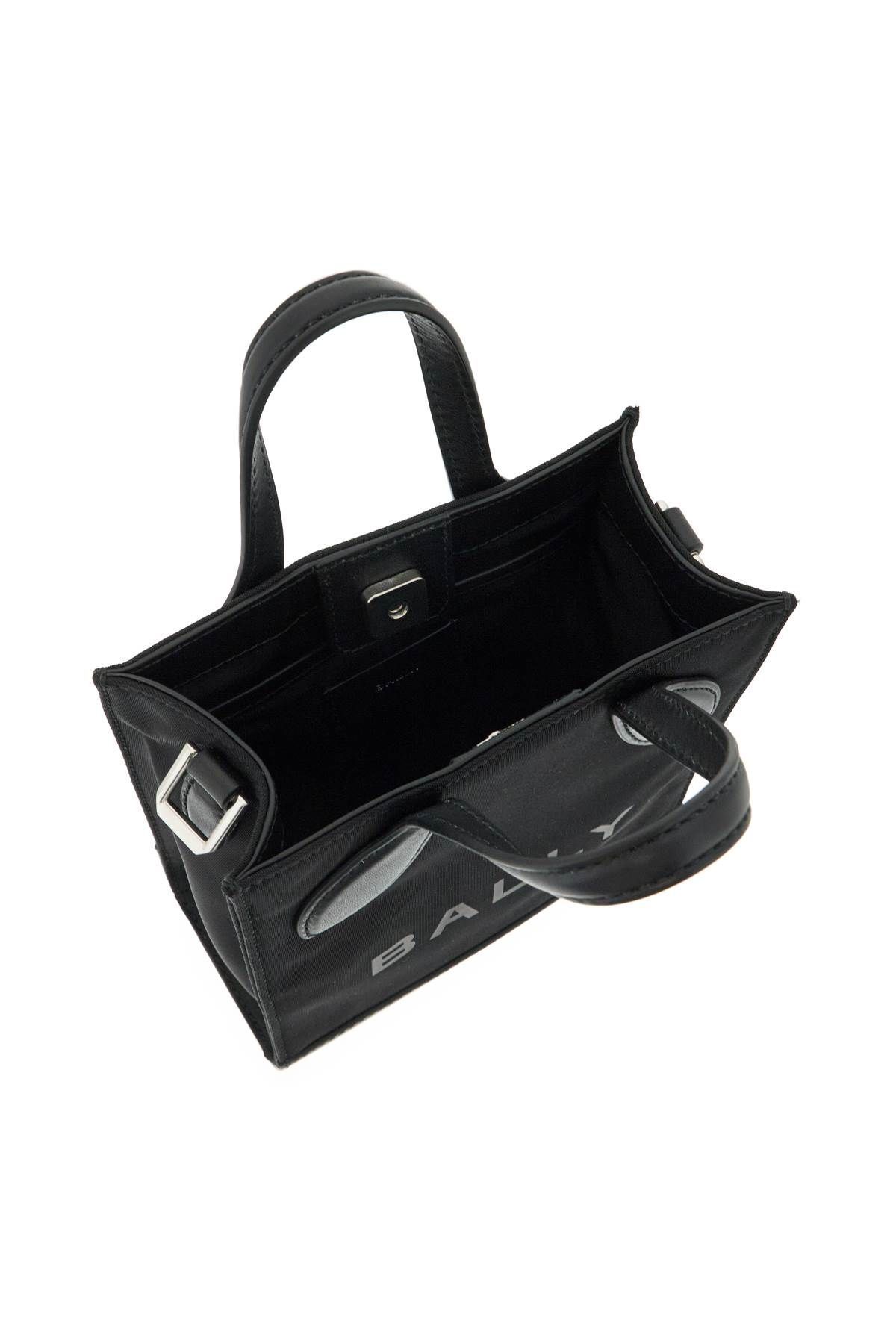 The Bar Keep On mini handbag by Bally is made of nylon canvas with smooth leather finishes and a contrasting printed logo on the front