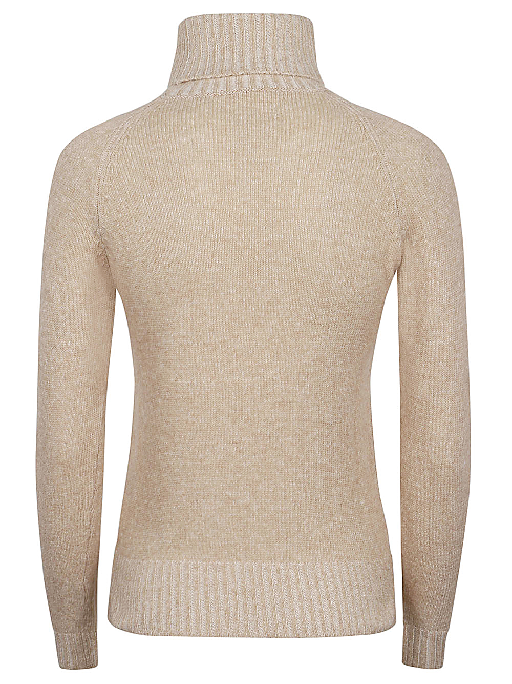 Long-sleeved sweater, turtleneck, ribbed edges and straight hem.