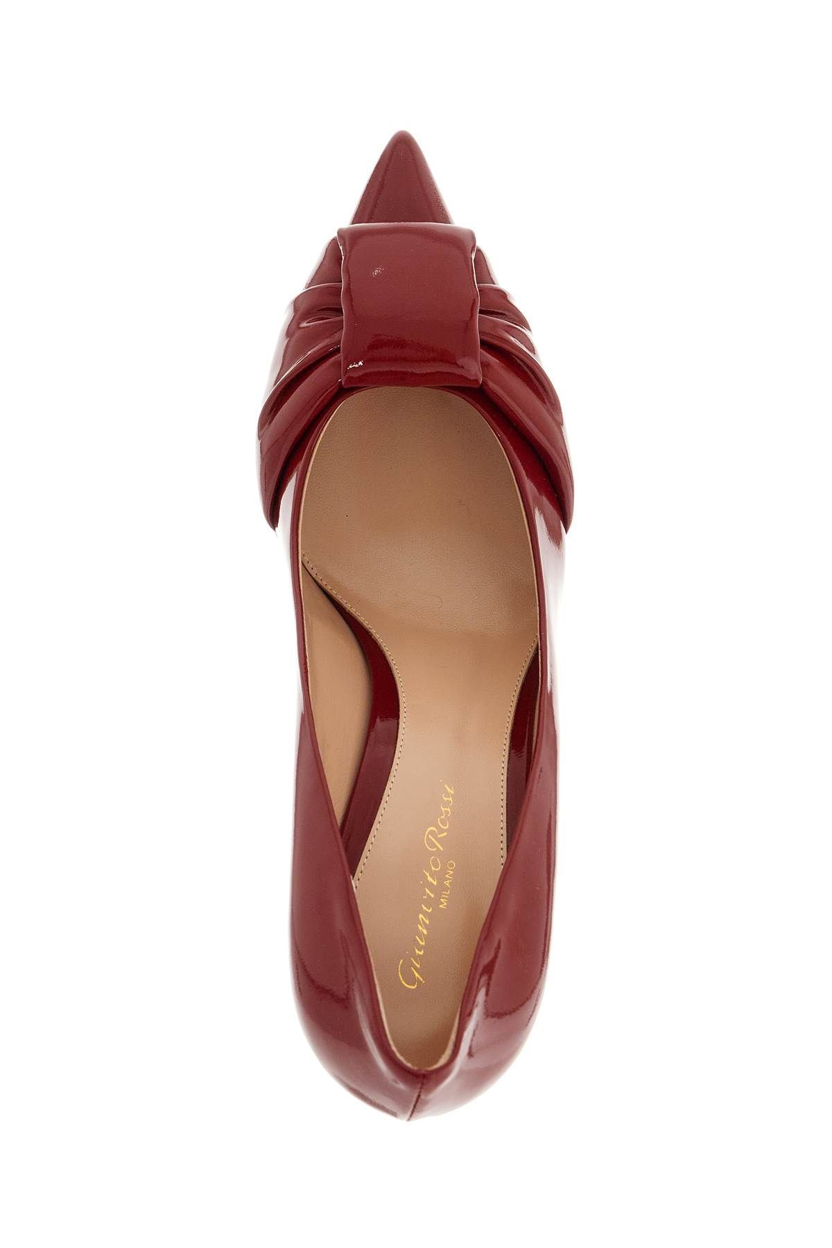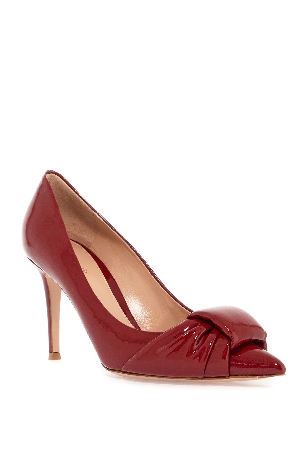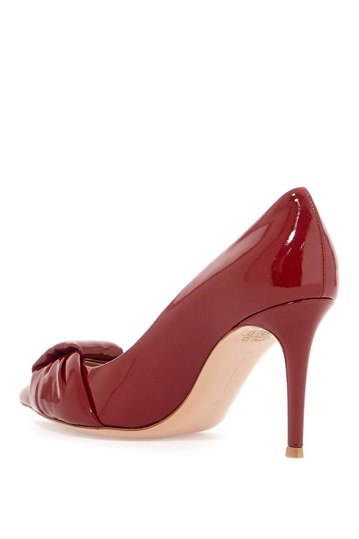 These Gianvito Rossi pumps are made of patent leather and feature a front knot detail