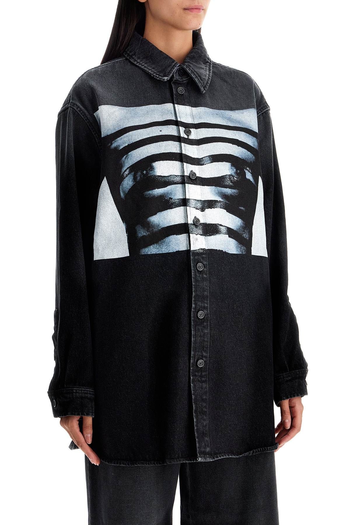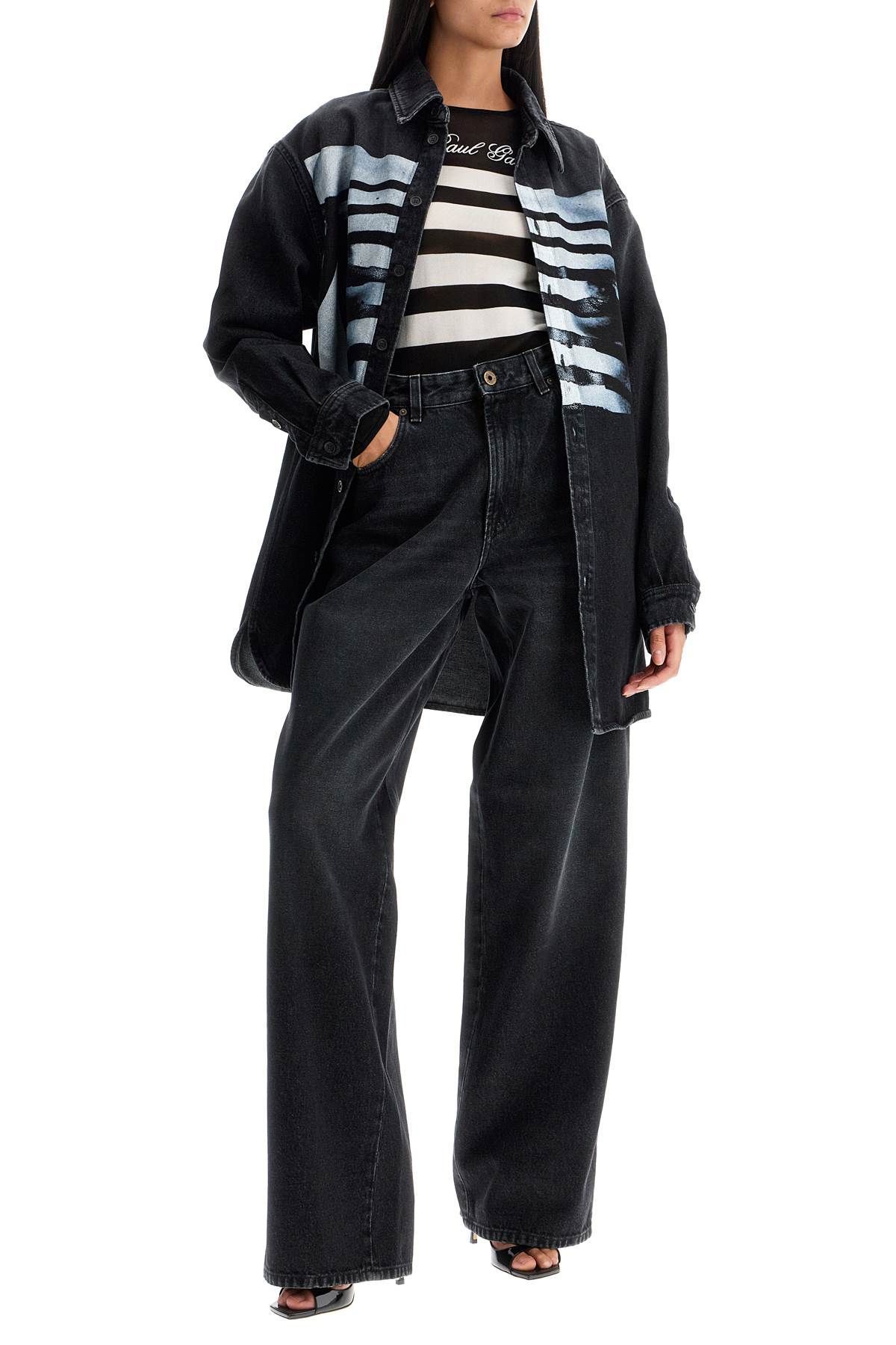 This oversized Jean Paul Gaultier shirt is made of heavy denim with a 'Body Marinière' print on the front