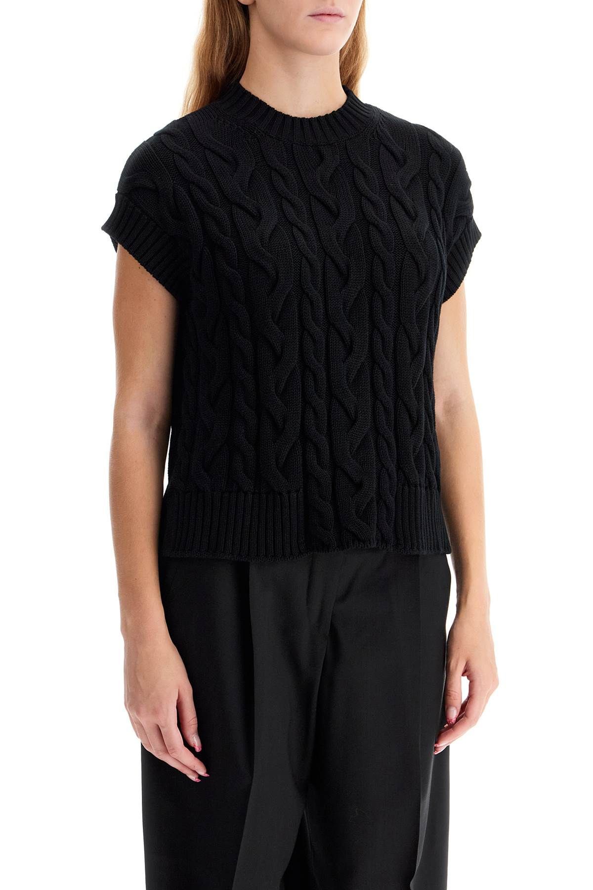 This 'S Max Mara vest is made of pure cotton yarn with a braided design, featuring a round neck and ribbed edges