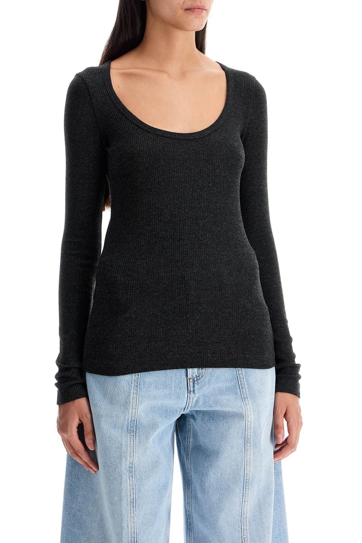 The Corey long-sleeved top by Agolde is made of ribbed stretch cotton blend, featuring a deep round neckline and a fitted silhouette