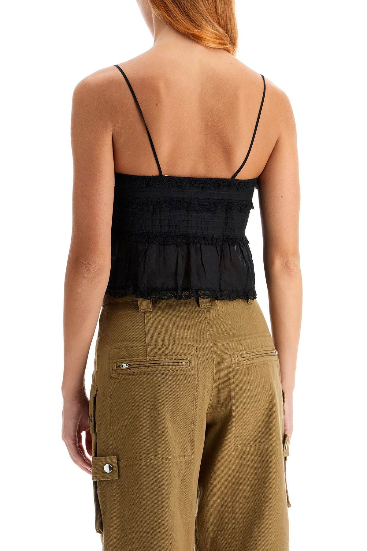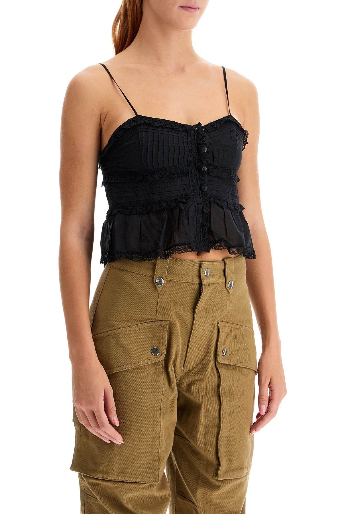 Short top by Marant Etoile in organic cotton voile embellished with ribbing and lace trim