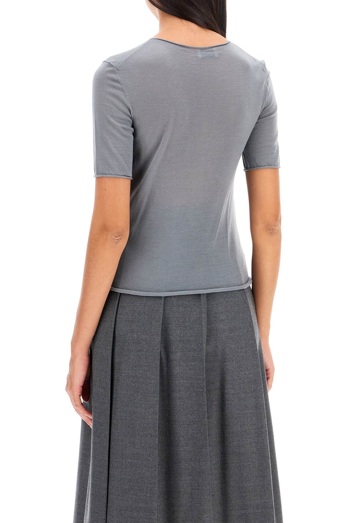 The MRZ short-sleeved crew neck top is made of ultra-lightweight pure virgin wool knit with rolled-up edges