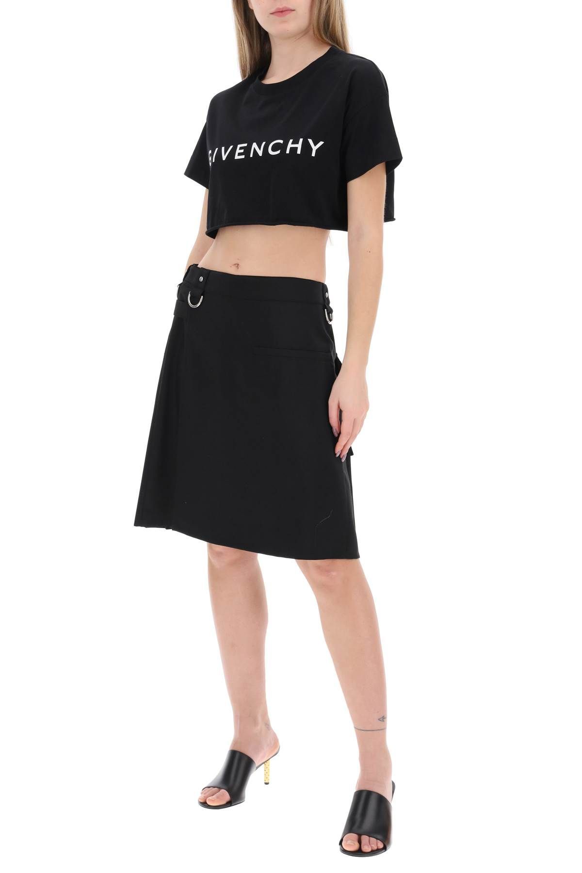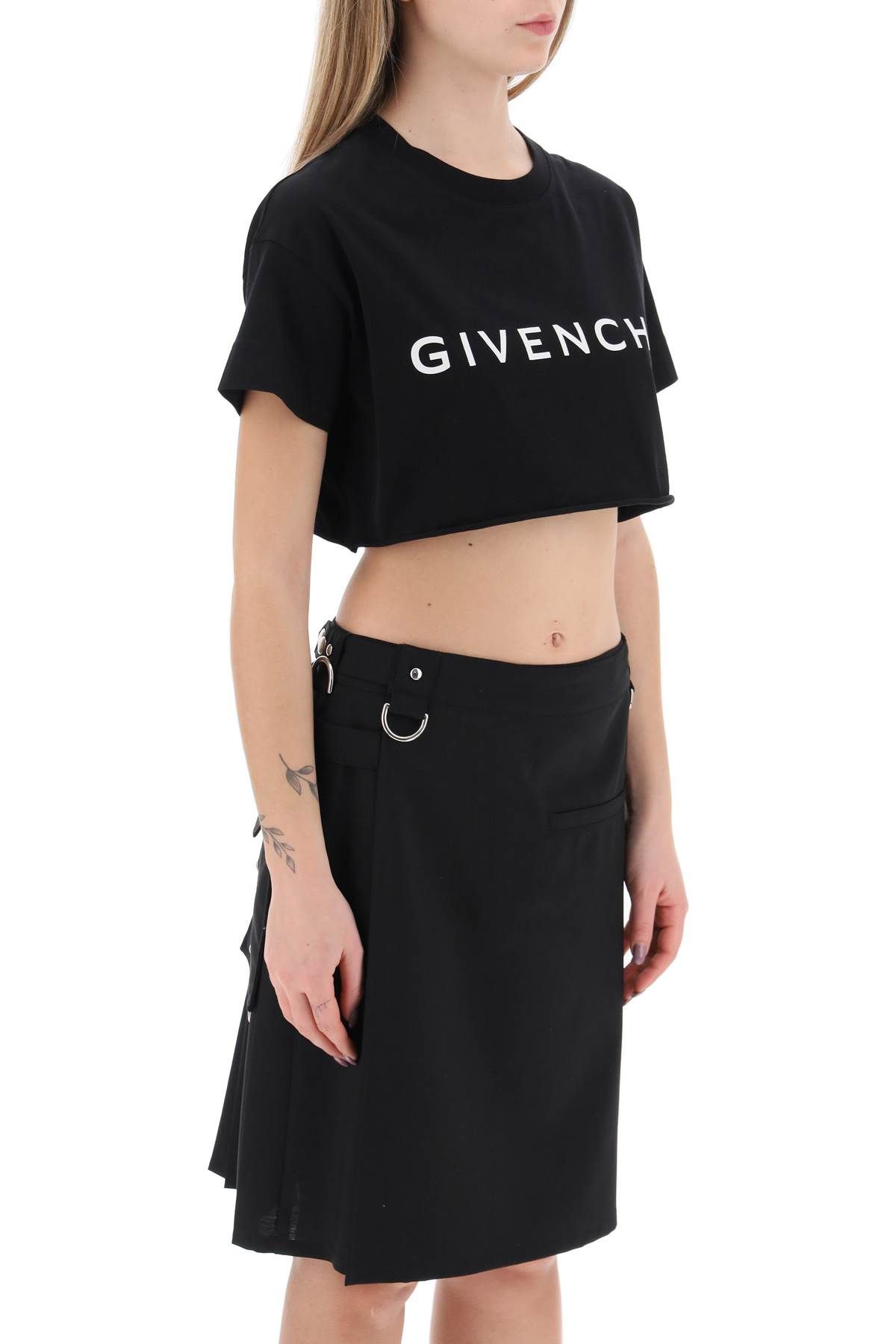 The Givenchy crew neck t-shirt has a straight and wide fit for a boxy look, highlighted by the cropped raw cut hem