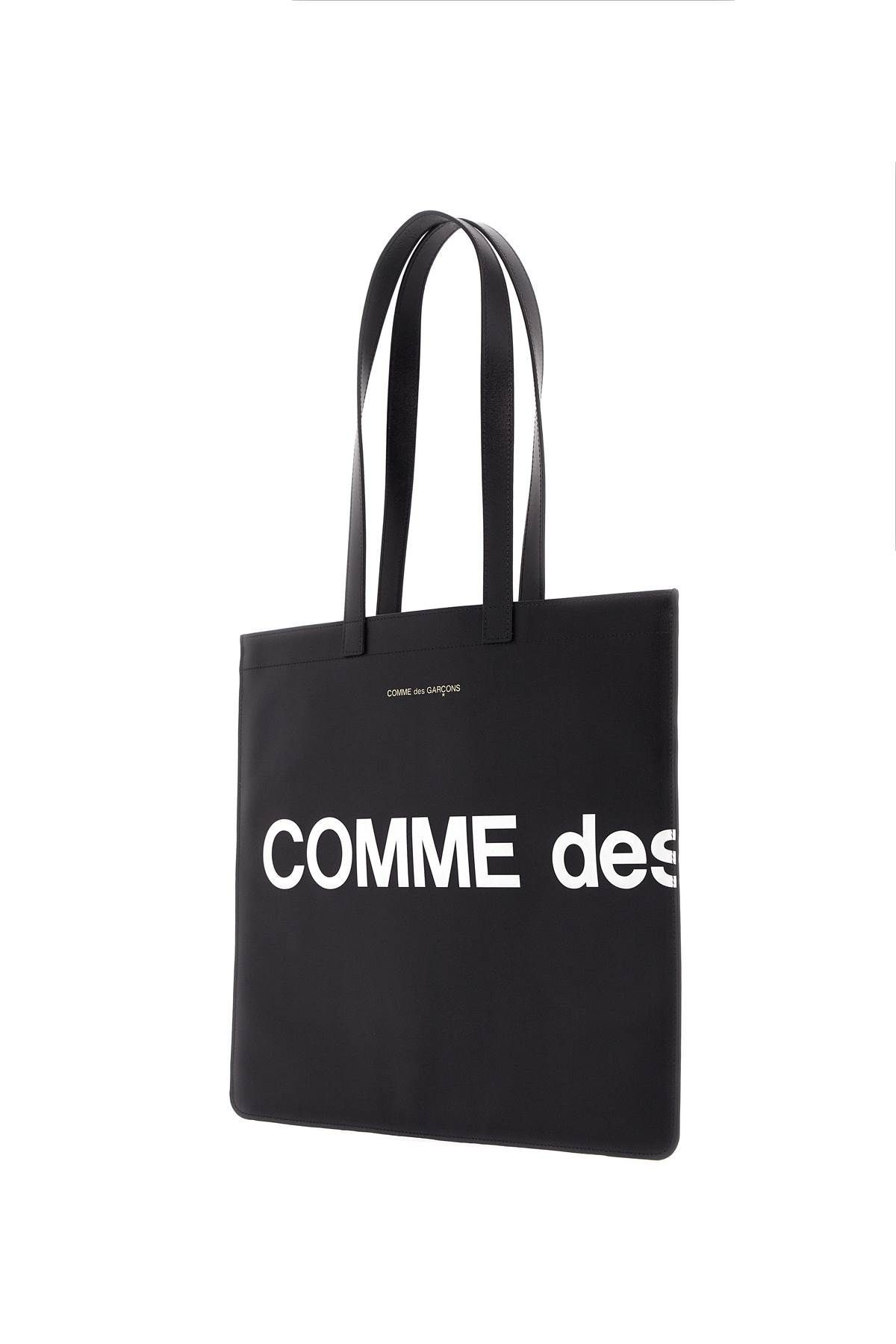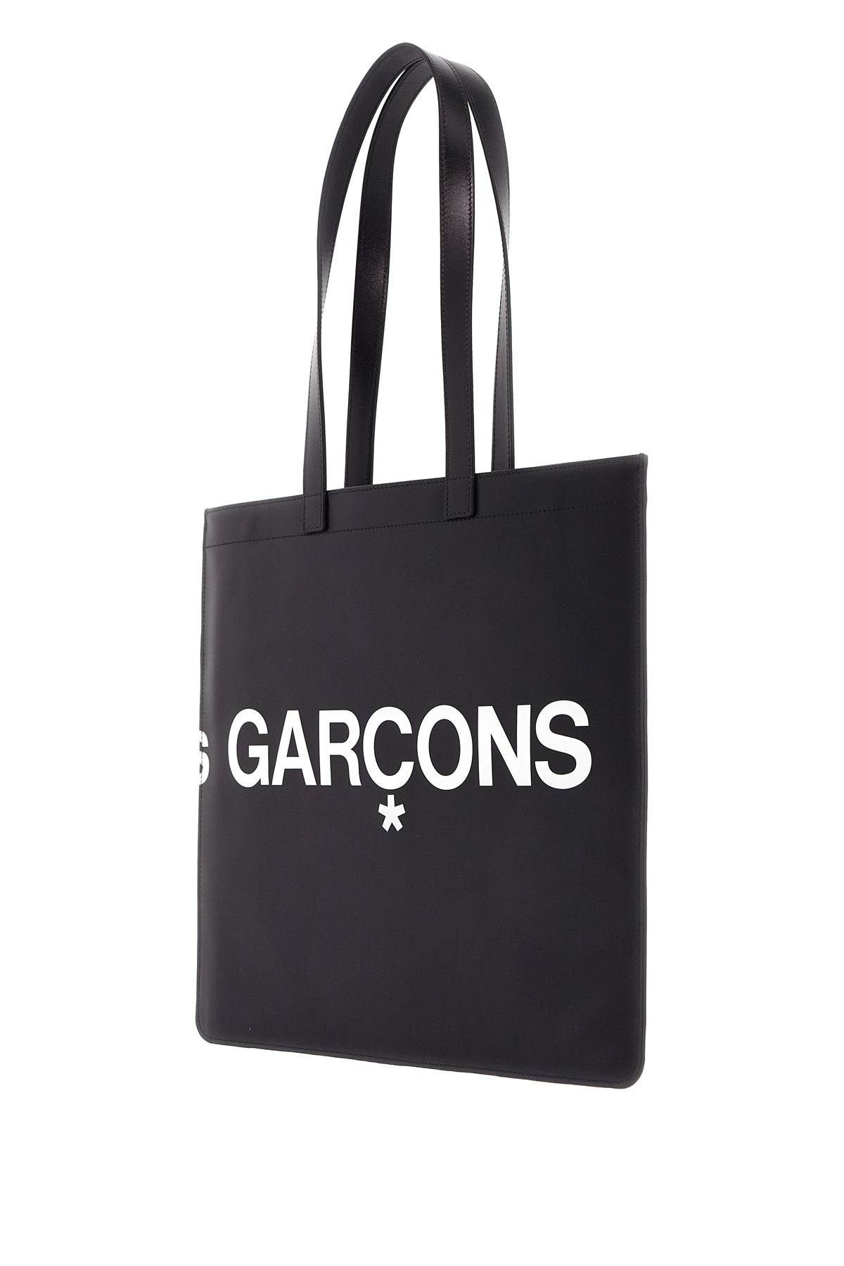 Comme des Garcons leather tote bag with contrasting maxi logo print on the front and on the back
