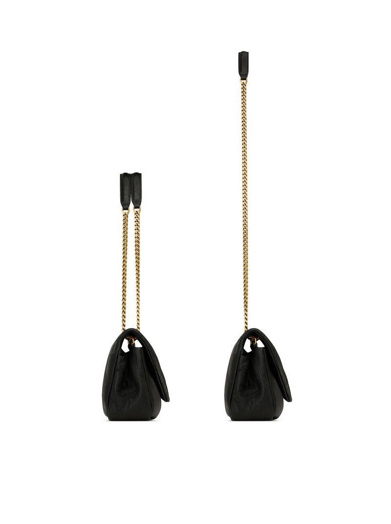 -CERTIFIED COTTON LINING -GROSGRAIN LINING -BRONZE-PLATED METAL PARTS -MAGNETIC CLOSURE -ONE ZIP POCKET -DIMENSIONS: 30 X 15 X 5-7.5 CM -SHOULDER STRAP DROP: 28.5-50.5 CM