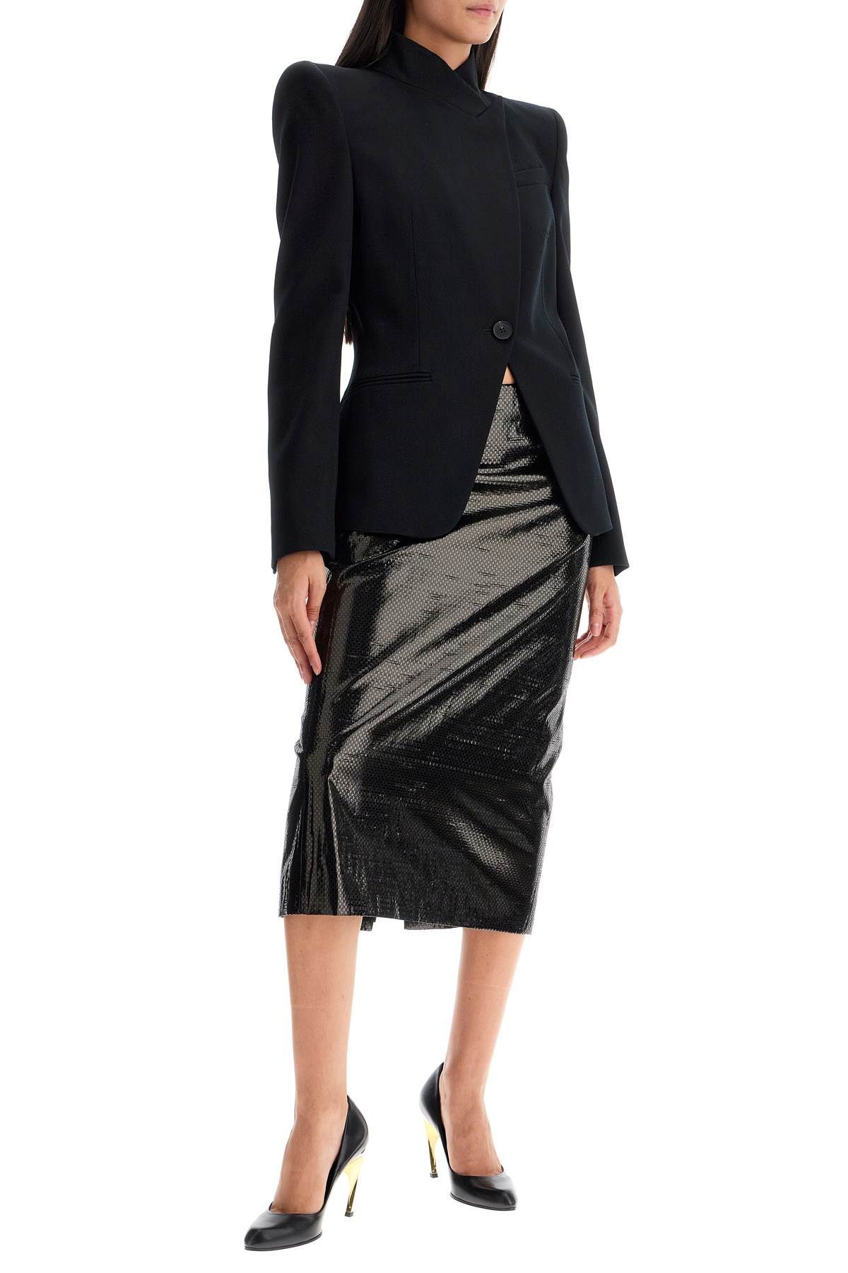 This midi skirt by Alexander McQueen is made of a textured blend of silk, featuring a straight pencil cut with a low waist and back slit