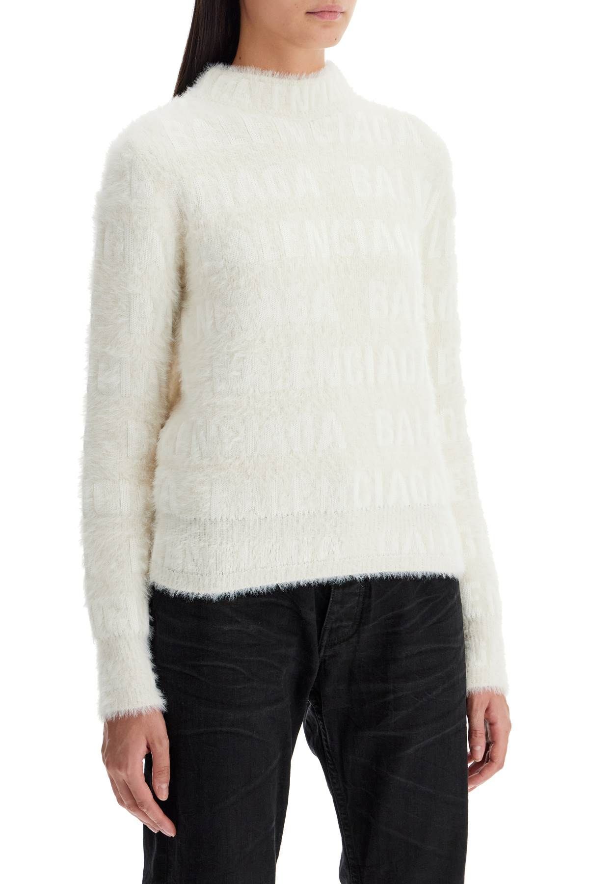 Adorned with the Balenciaga logo in all-over jacquard, this sweater is made of a wool blend with a fuzzy finish and features regular proportions with a turtleneck collar