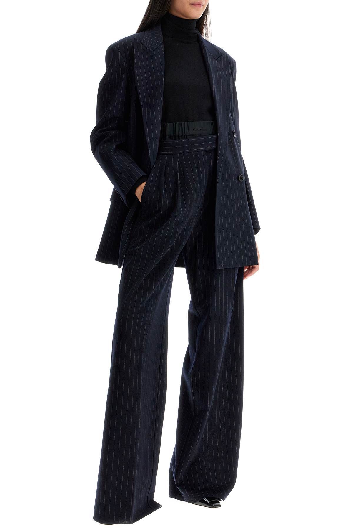 High-waisted pinstripe trousers by Max Mara made of fine virgin wool and viscose jersey with a wide double pleat cut
