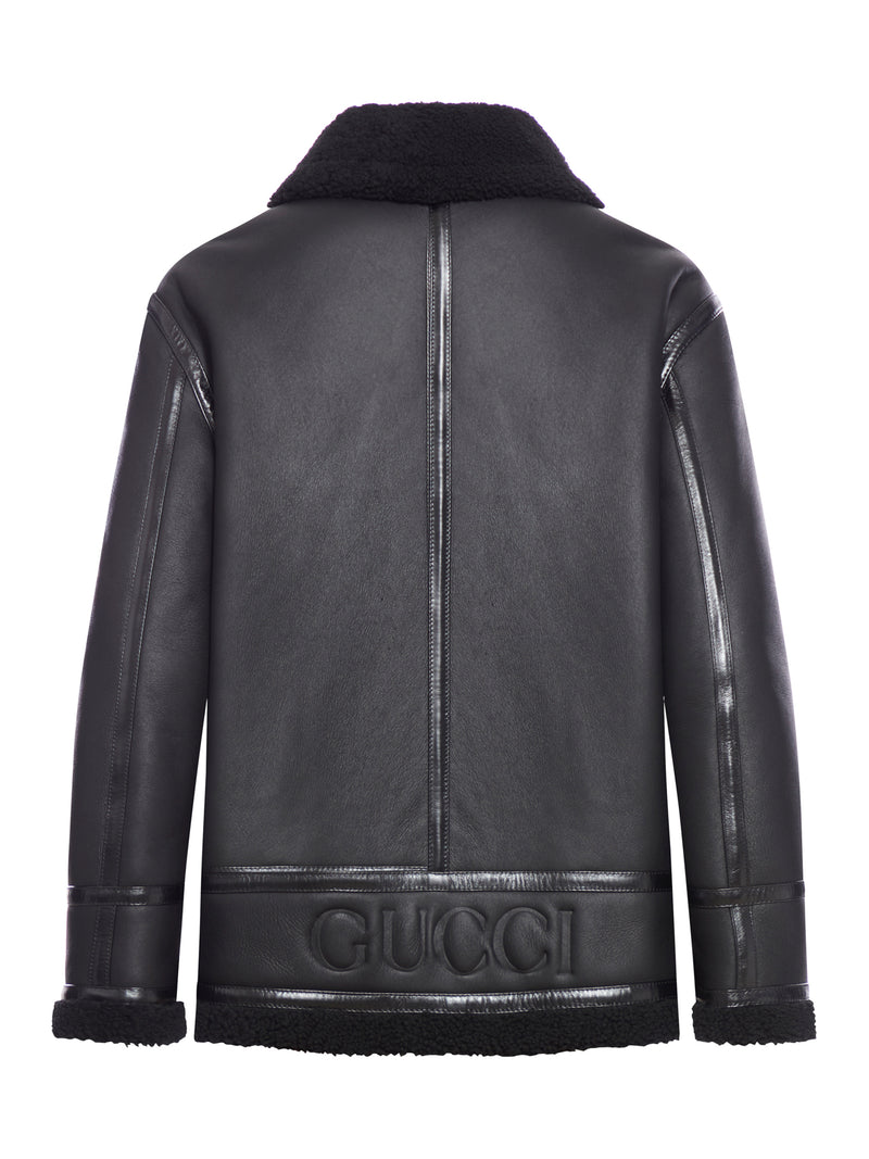 -OVER FIT -SHEARLING INSERTS AND INTERNAL LINING -SMOOTH LAMBSHAIR BALLS -FRONT ZIP -SIDE POCKETS -POLISHED LEATHER INSERTS -METAL BUCKLES -GUCCI LOGO SEWN ON THE BACK