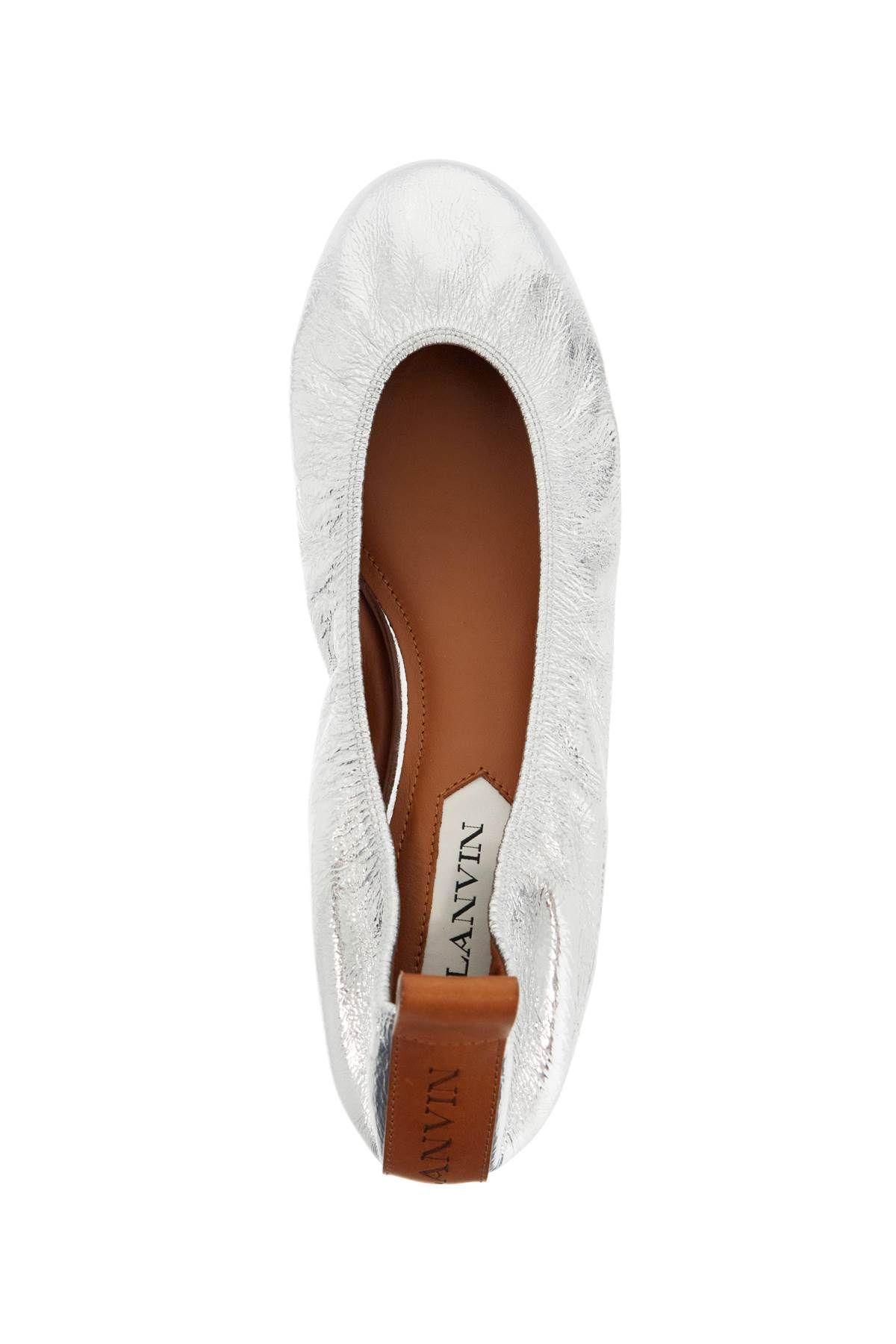 Lanvin ballerina flats made of laminated leather with a logo detail on the heel and a contrasting smooth leather back strap